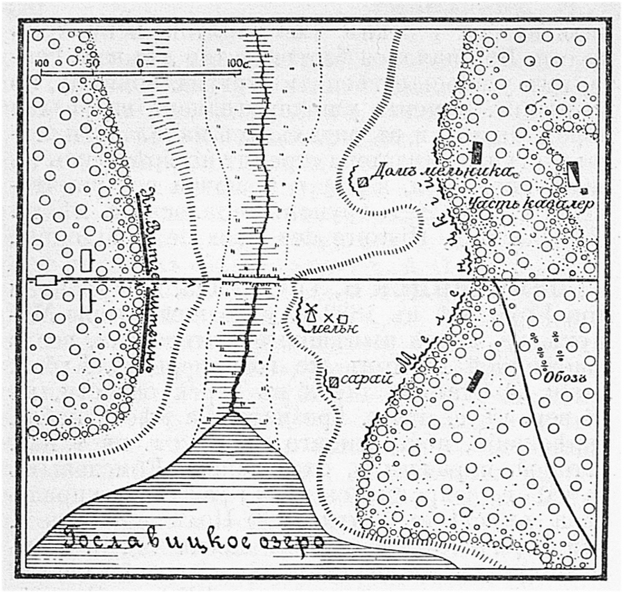 Карта-схема битвы при Фрауштадте, 13 (3) февраля 1706 года