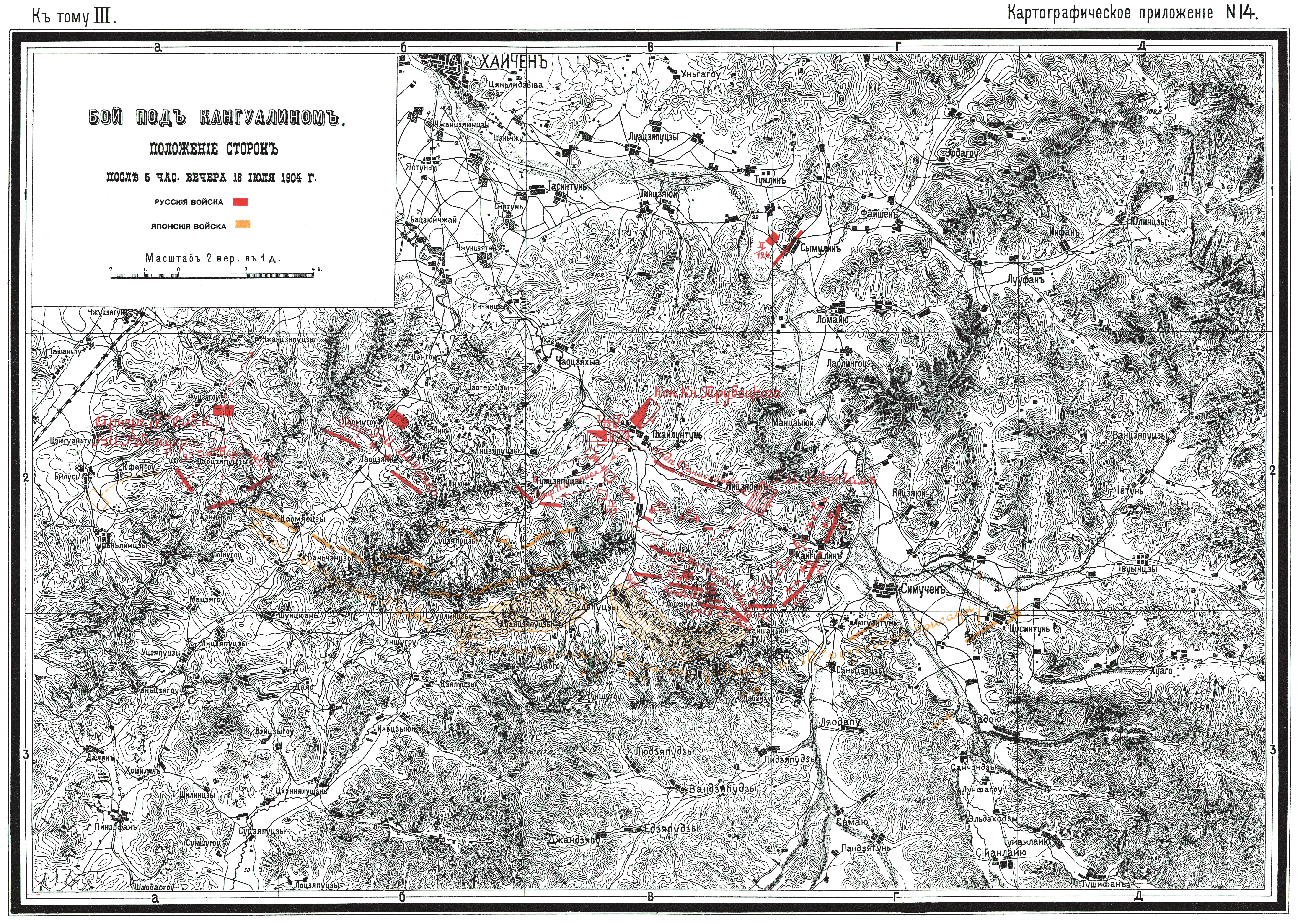 Бой под Кангуалином. Положение сторон после 5 часов вечера 18 июля 1904 года