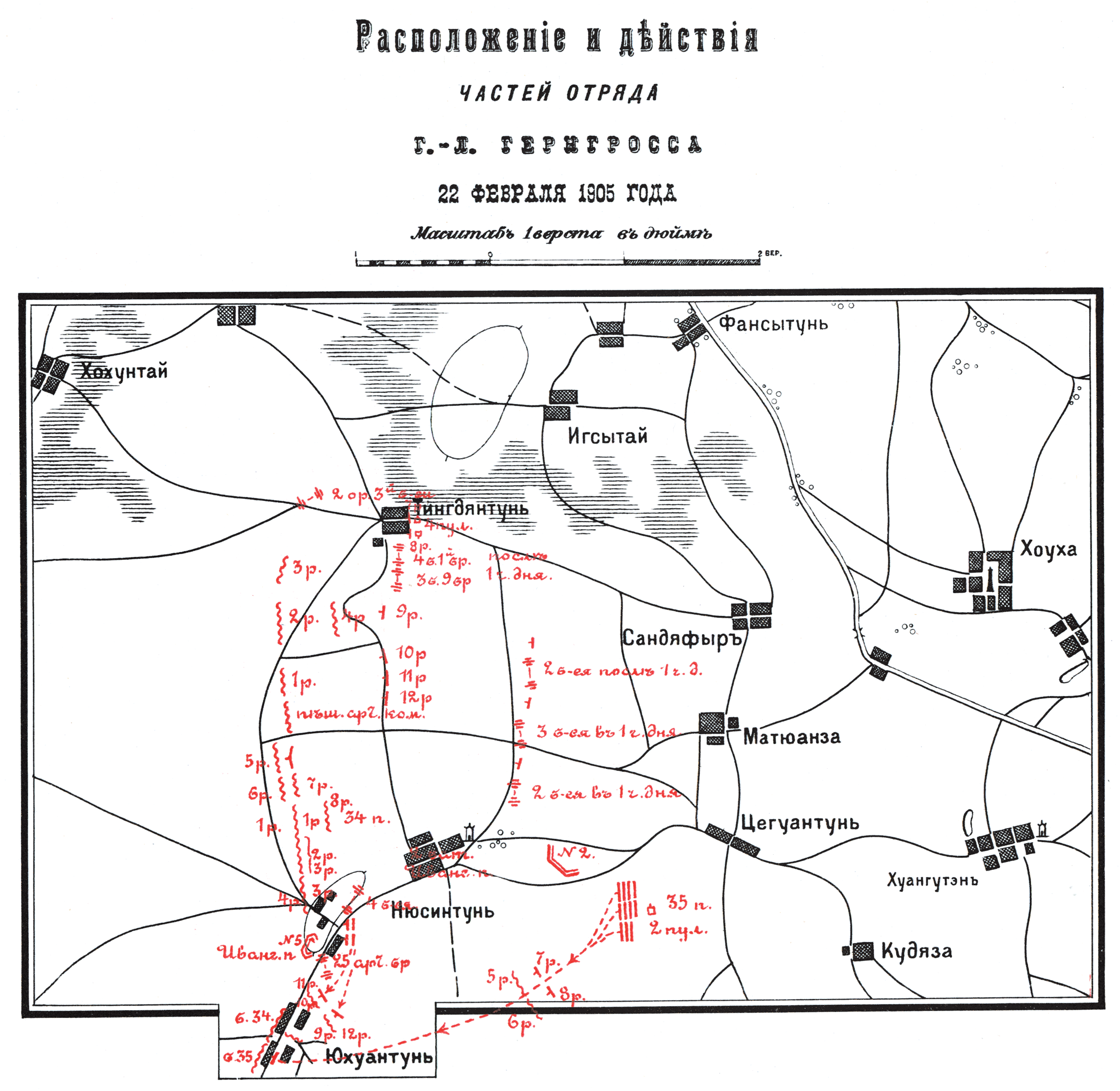 Расположение и действия частей отряда генерал-лейтенанта Гернгросса 22 февраля 1905 года