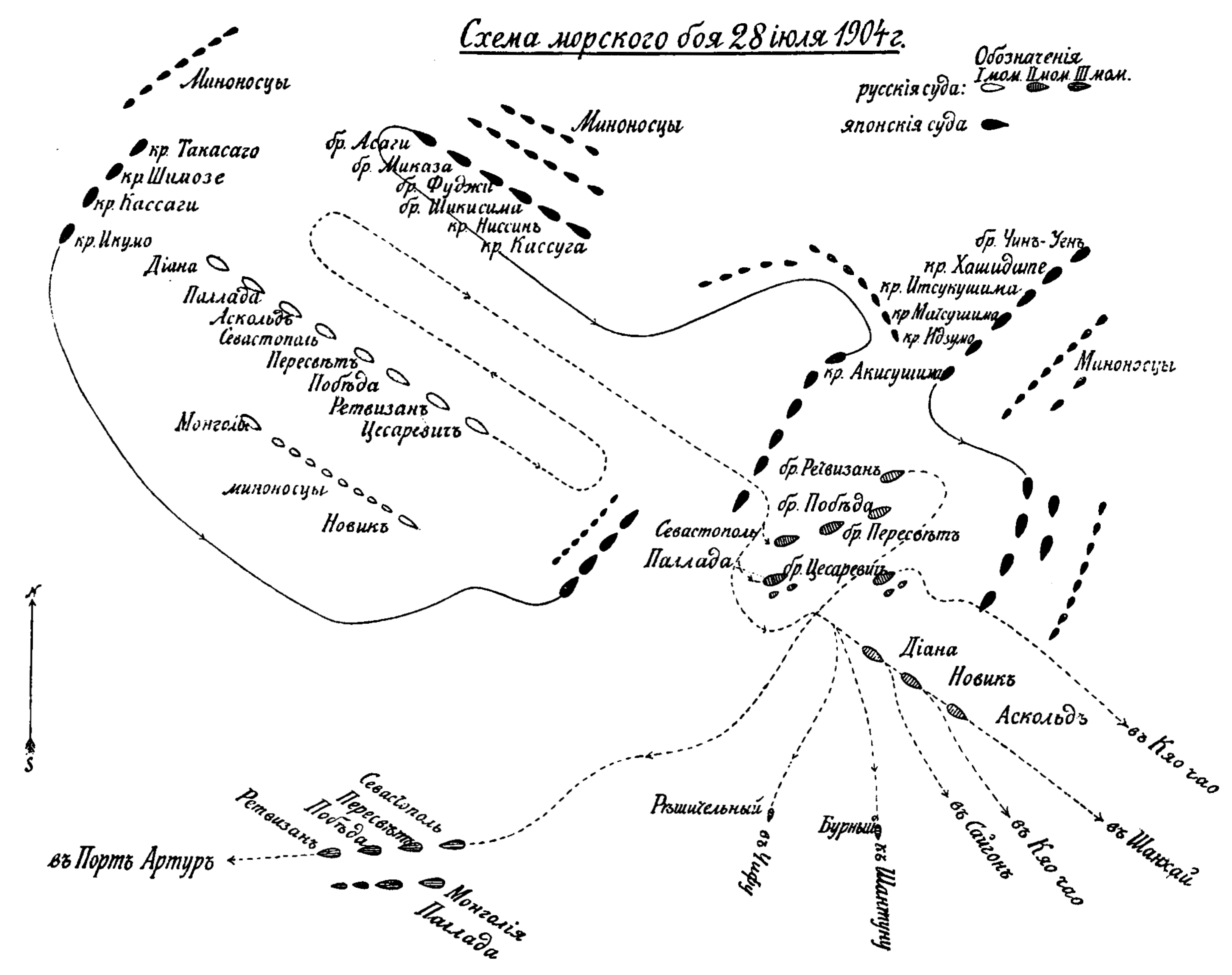 Схема морского боя 28 июля 1904 года