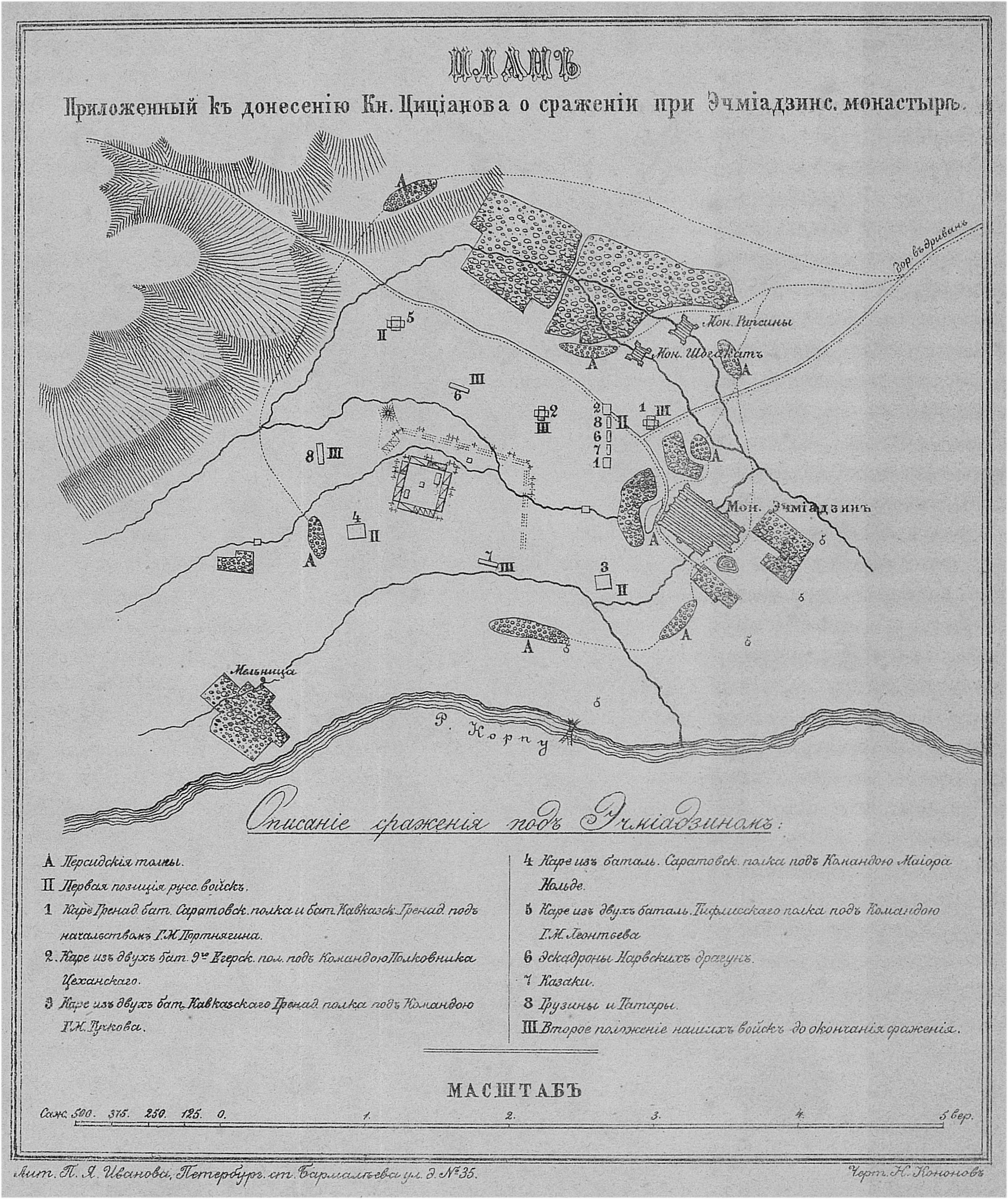 План, приложенный к донесению князя Цицианова о сражении при Эчмиадзинском монастыре