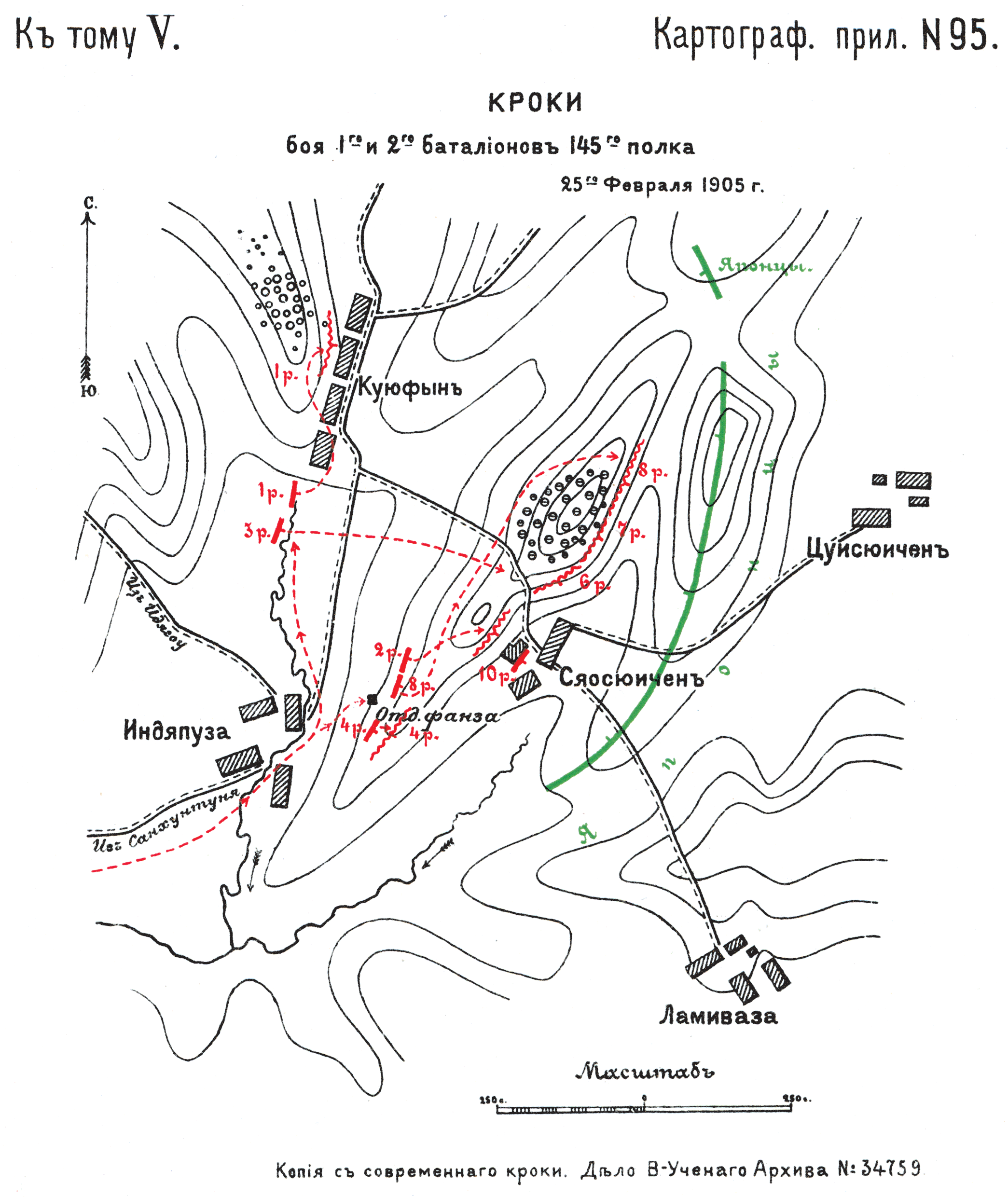Кроки боя 1 и 2 батальонов 145 полка 25 февраля 1905 года