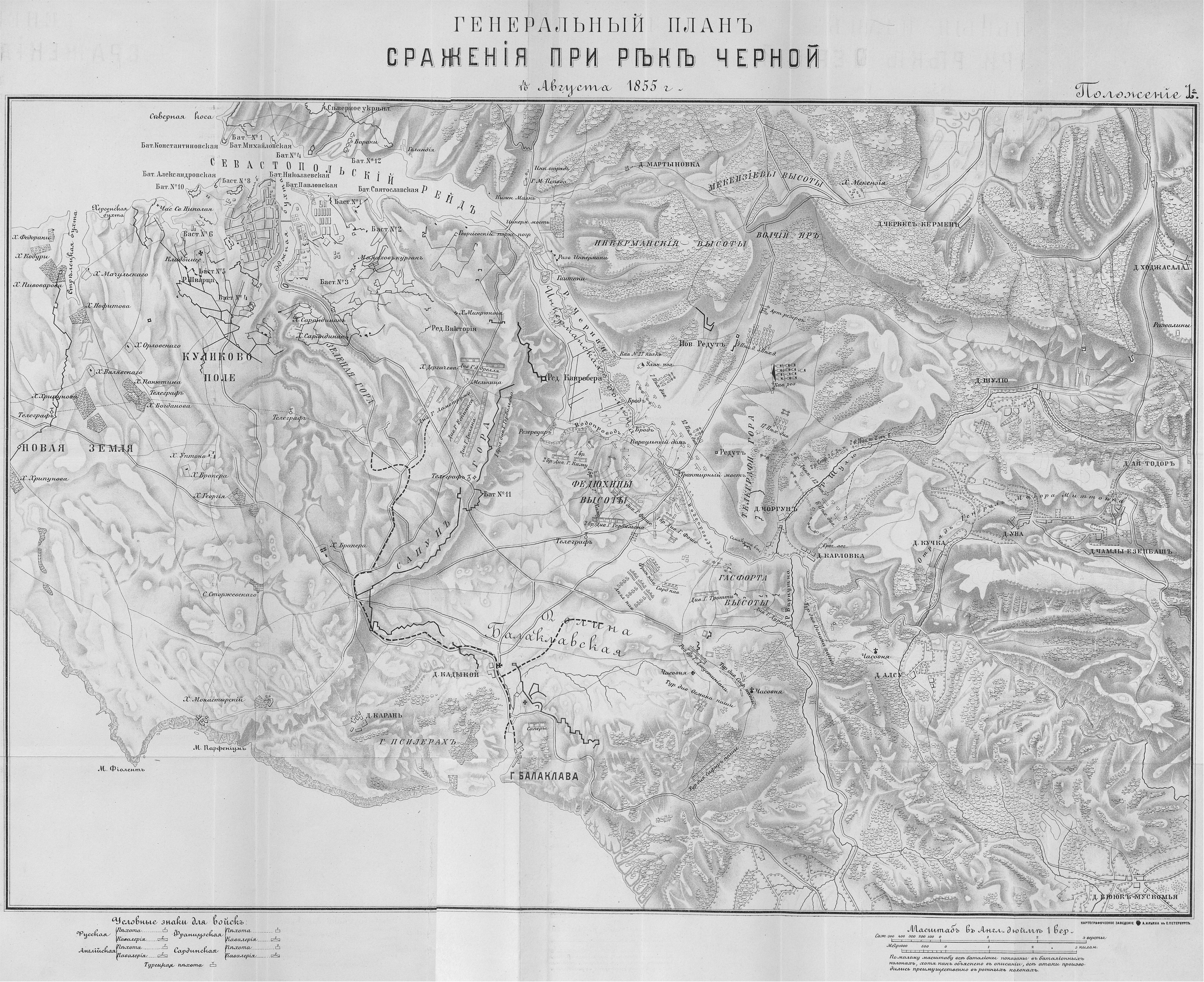 Генеральный план сражения при реке Черной 4/16 августа 1855 года. Положение 1