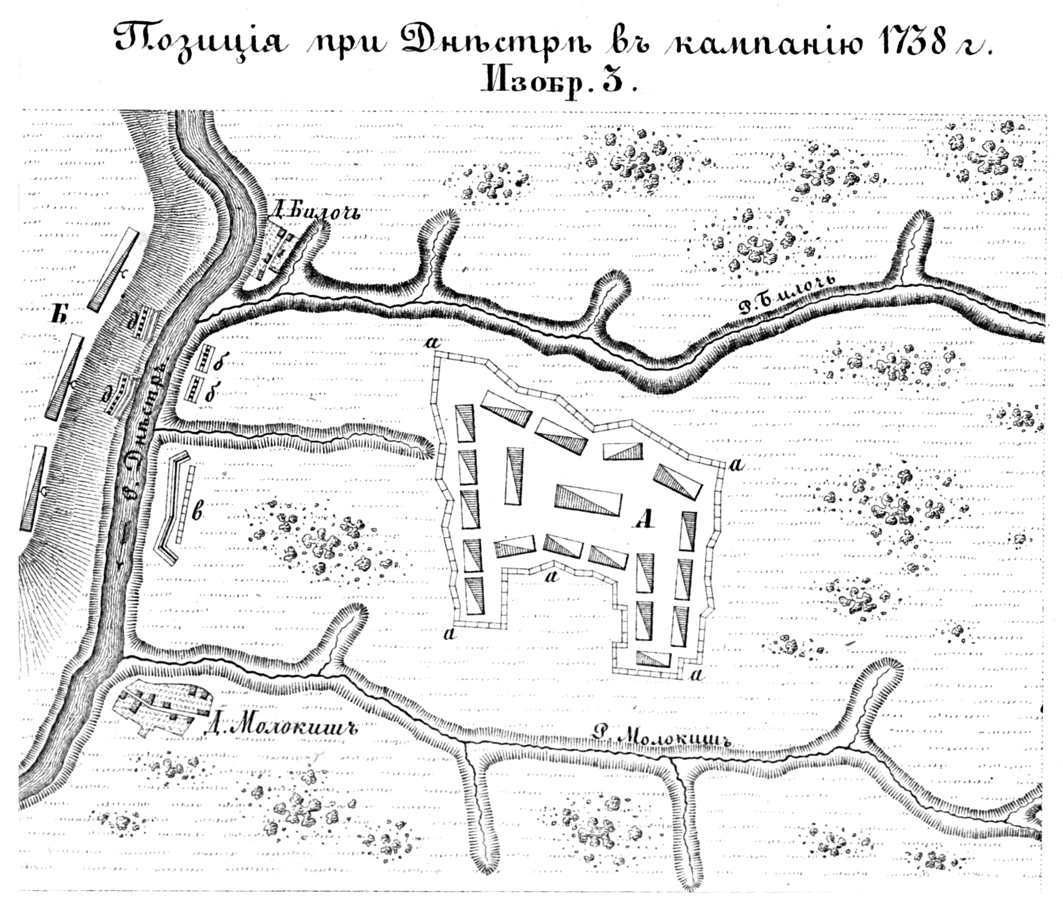 Полевые и временные укрепления. Изобр.3. Позиция при Днестре в кампанию 1738 года