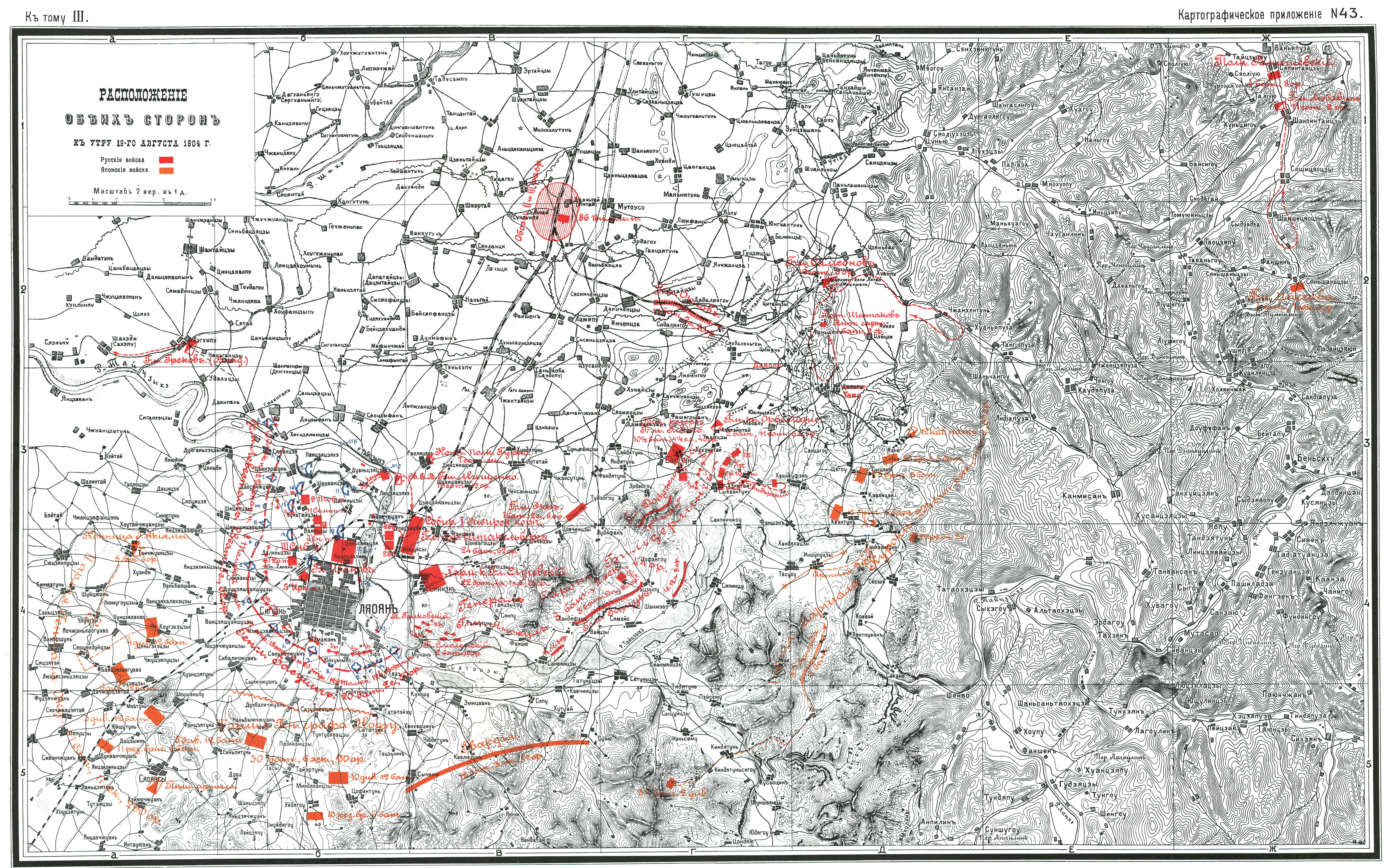 Расположение обеих сторон к утру 19 августа 1904 года