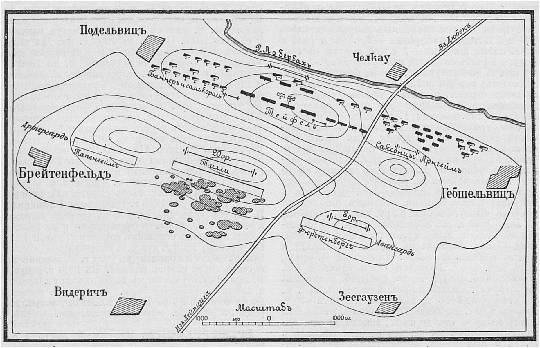 Карта-схема битвы при Фрауштадте, 13 (3) февраля 1706 года