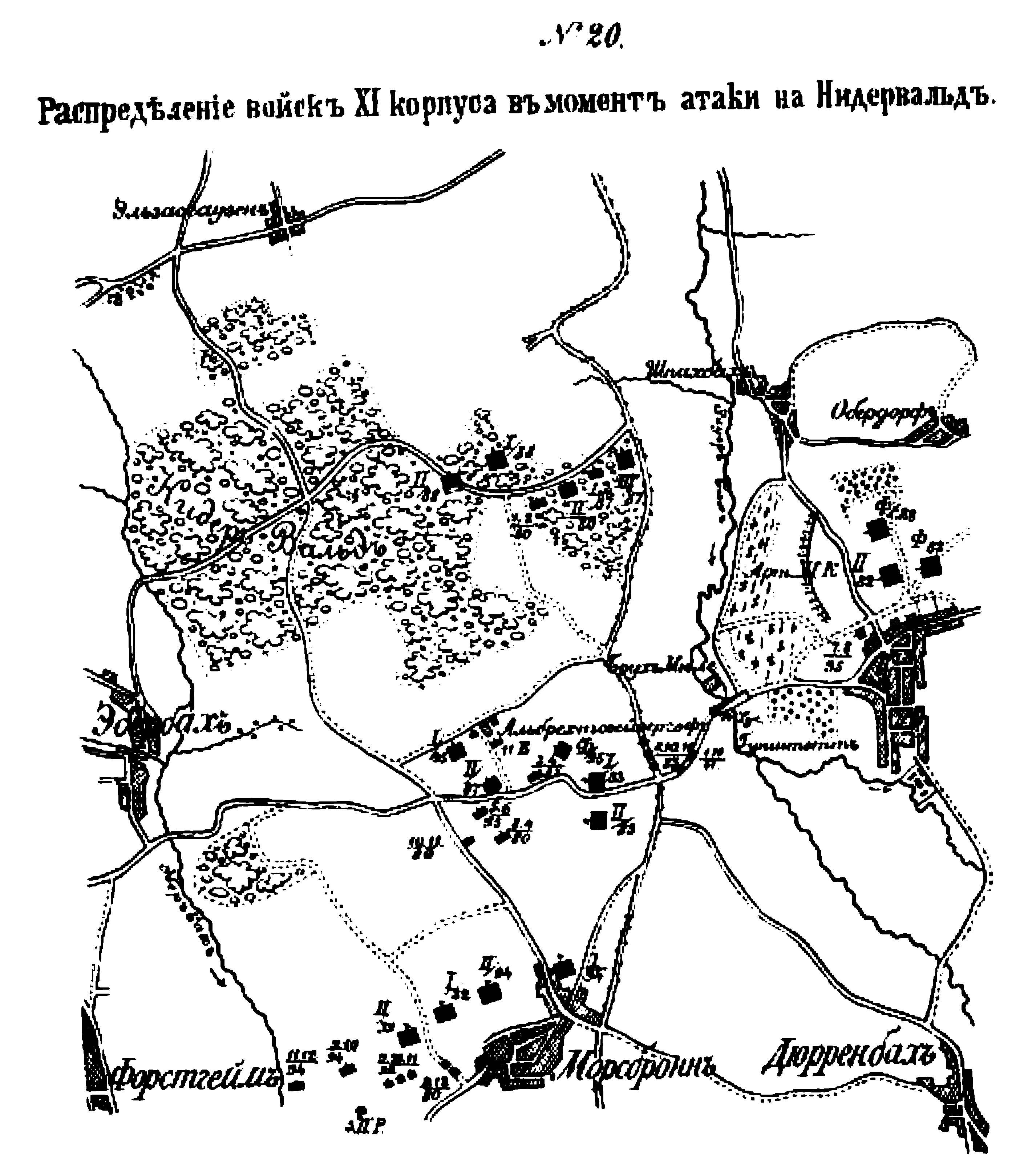 Распределение войск XI корпуса в момент атаки на Нидервальд