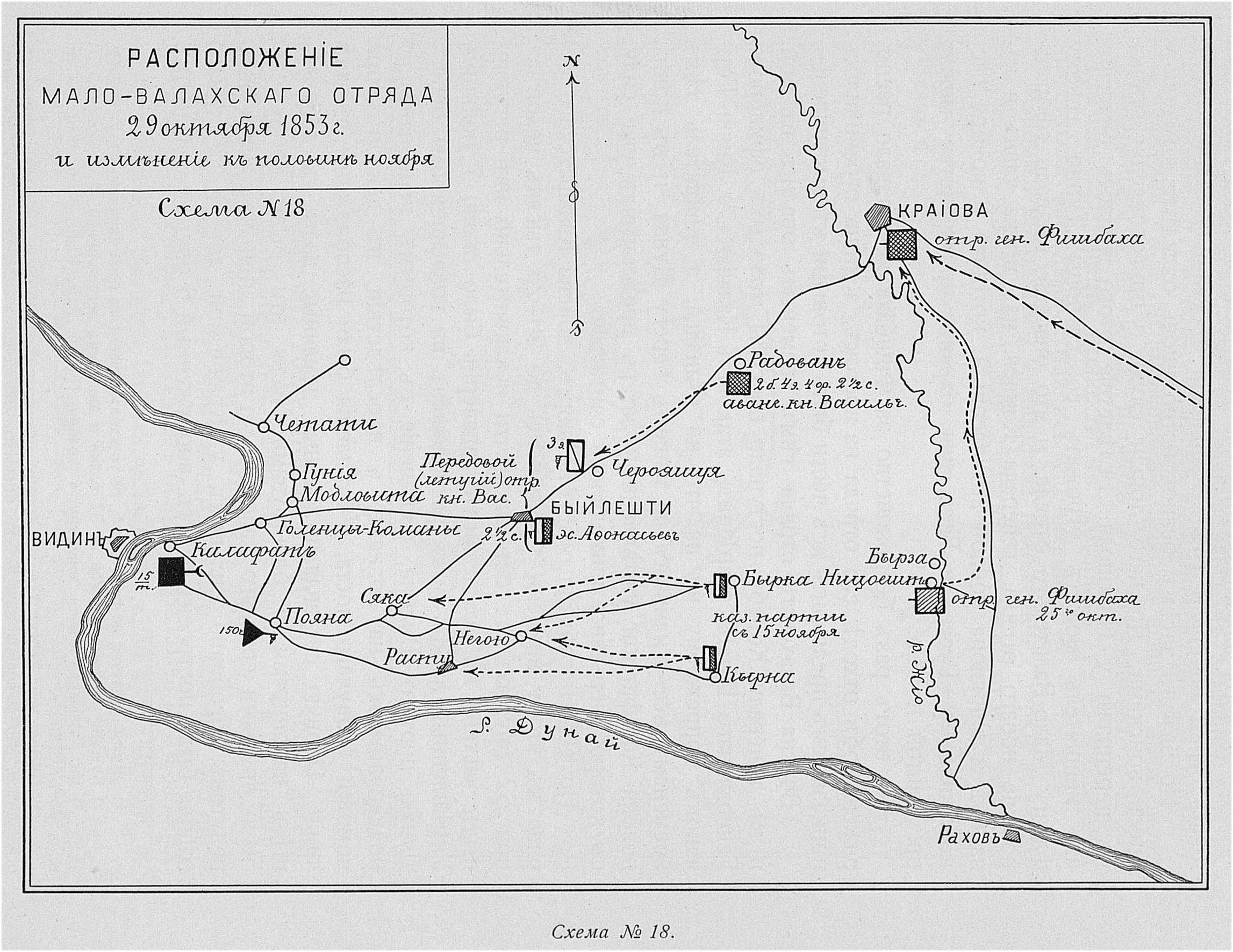 Расположение Мало-Валахского отряда 29 октября 1853 года и изменение к половине ноября