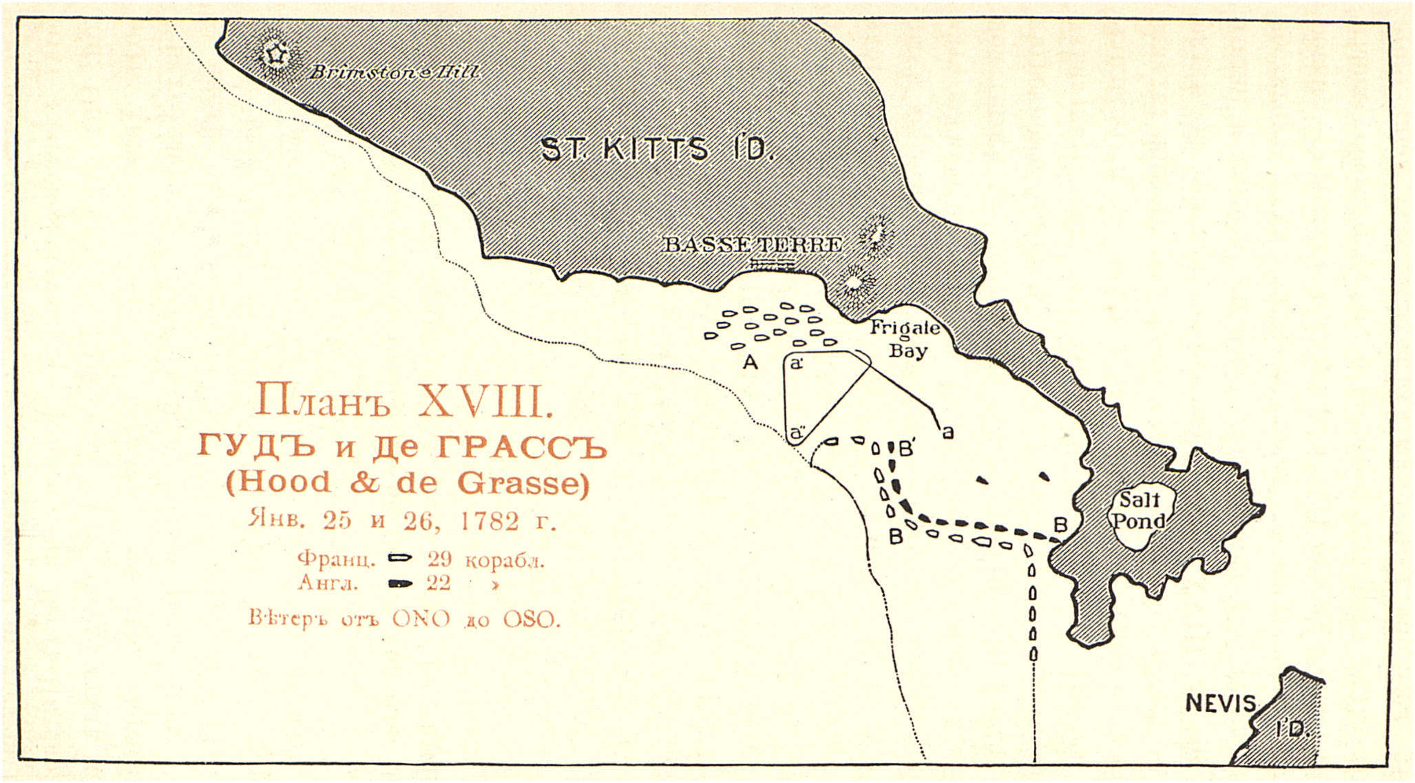 Сражение между Гудом и де Грассом 25 и 26 января 1782 года