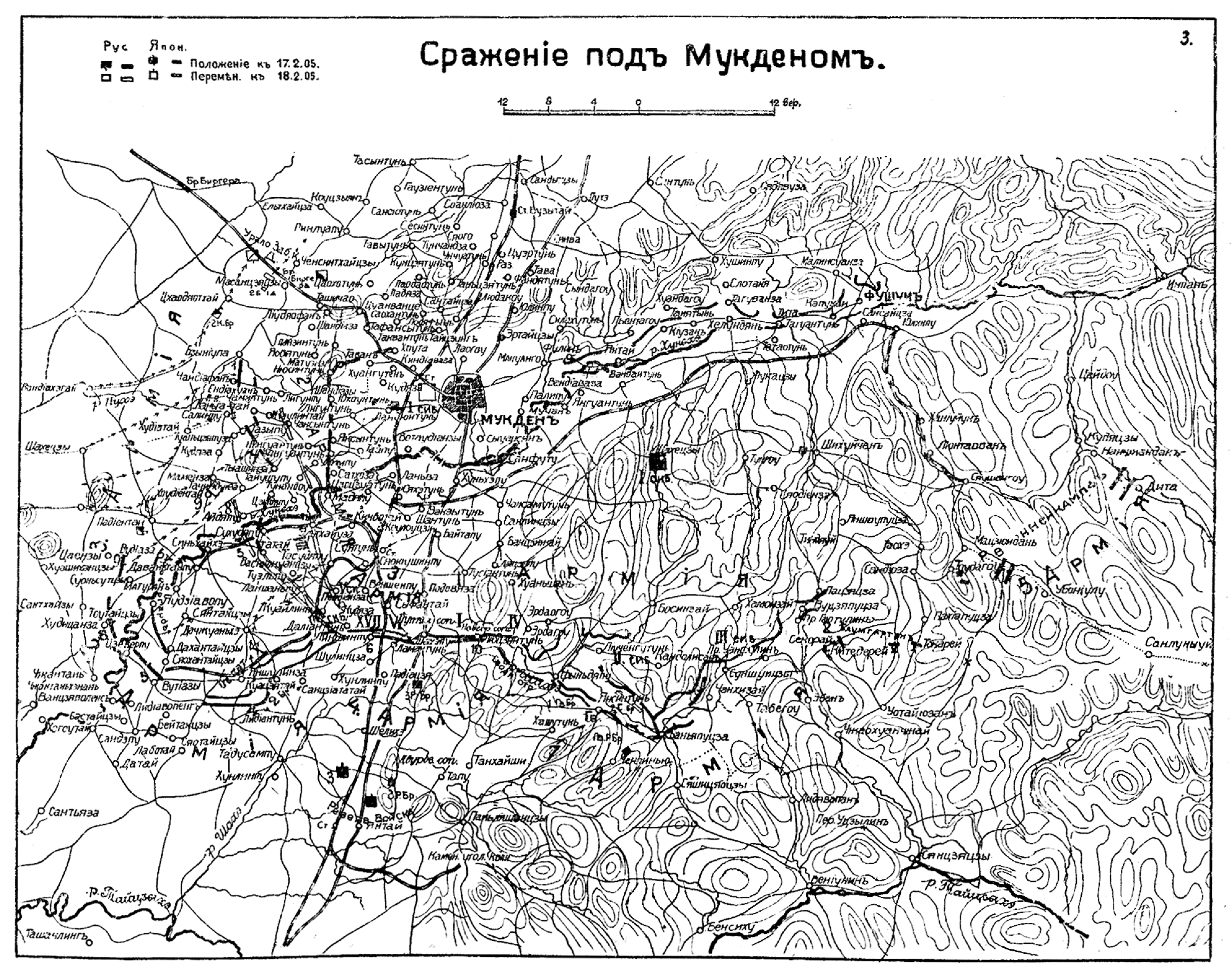 Сражение под Мукденом. Положение 17-18 февраля 1905 года