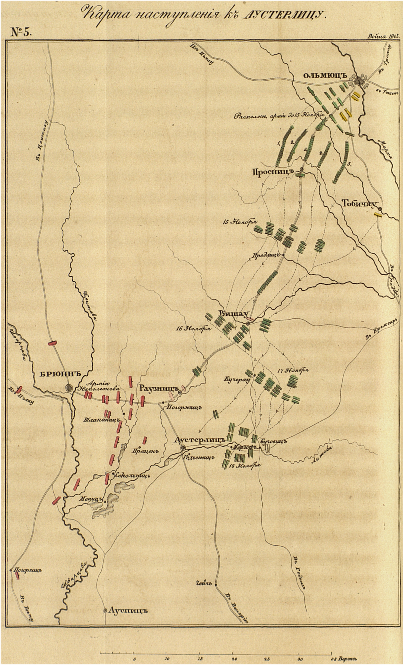 Карта наступления к Аустерлицу.