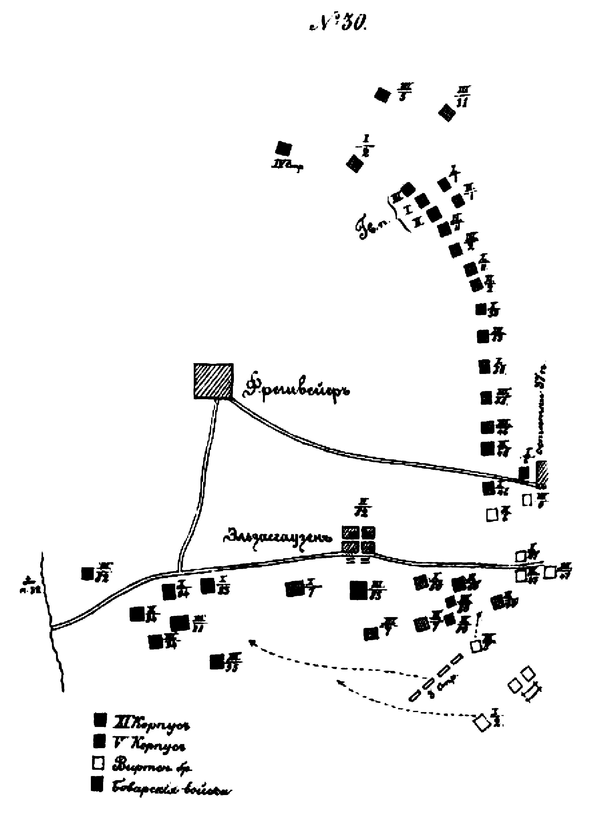 Карта-схема битвы при Фрауштадте, 13 (3) февраля 1706 года