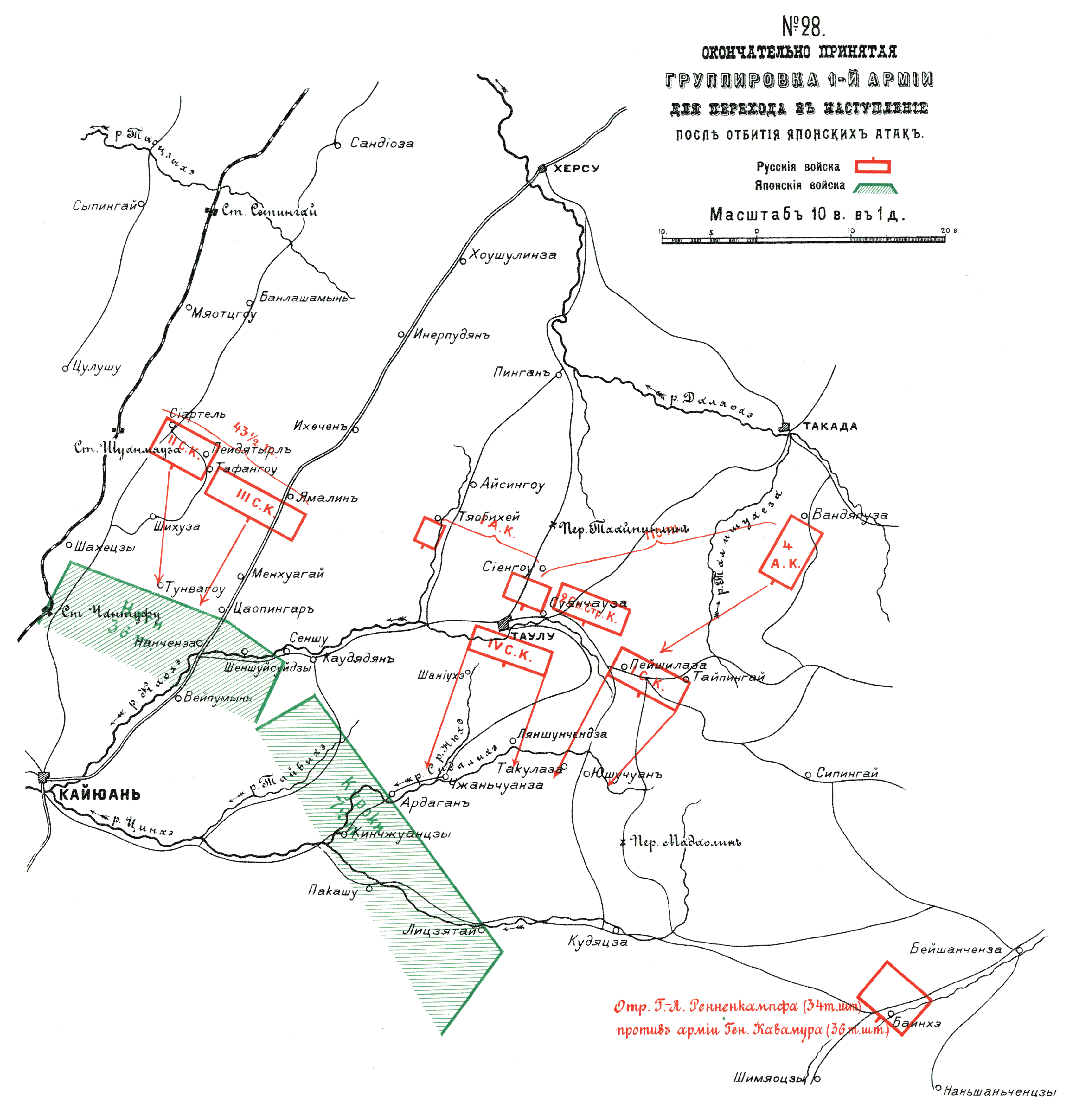 Окончательно принятая группировка 1 армии для перехода в наступление после отбития японских атак