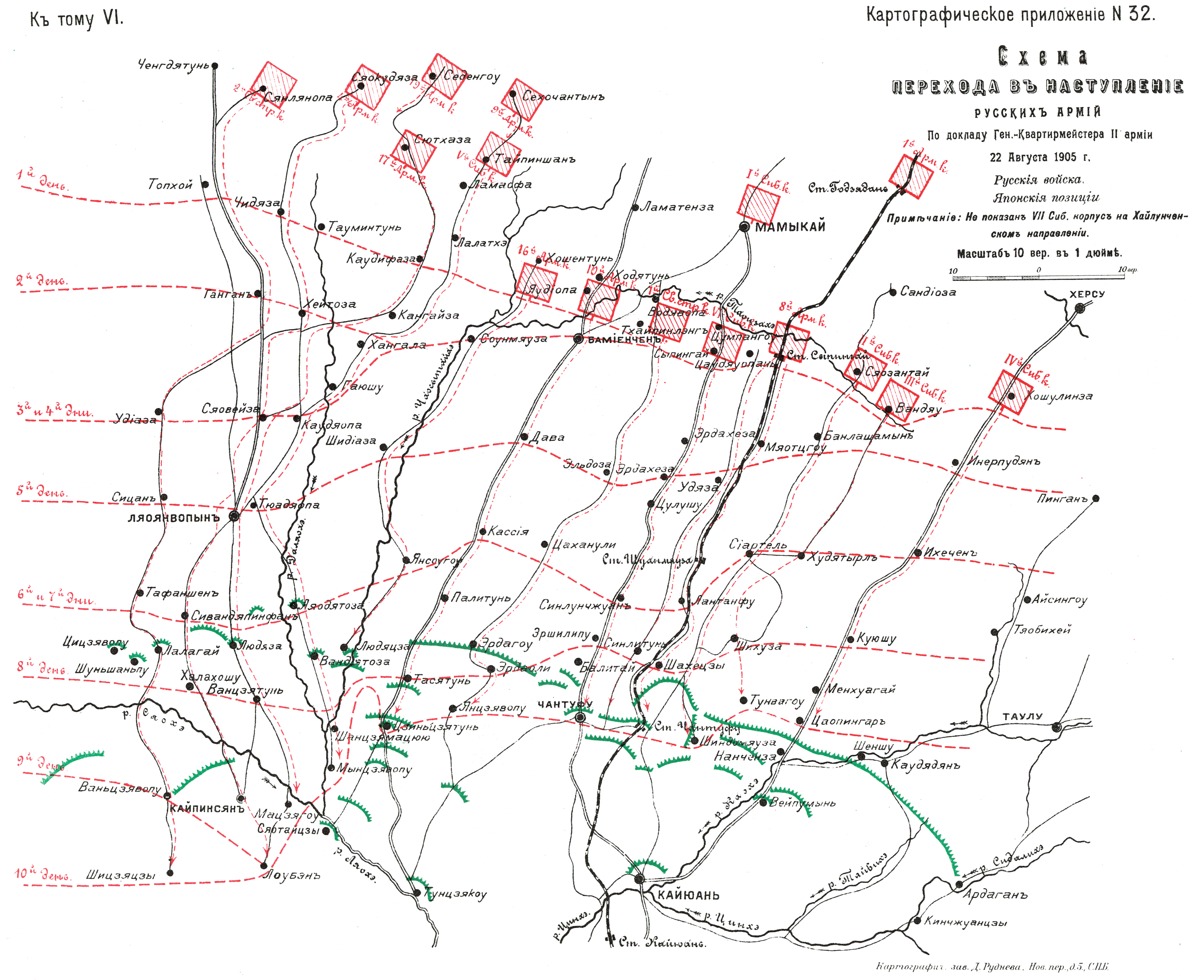Переход в наступление русских армий. По докладу Генерал-Квартирмейстера 2армии 22 августа 1905 года