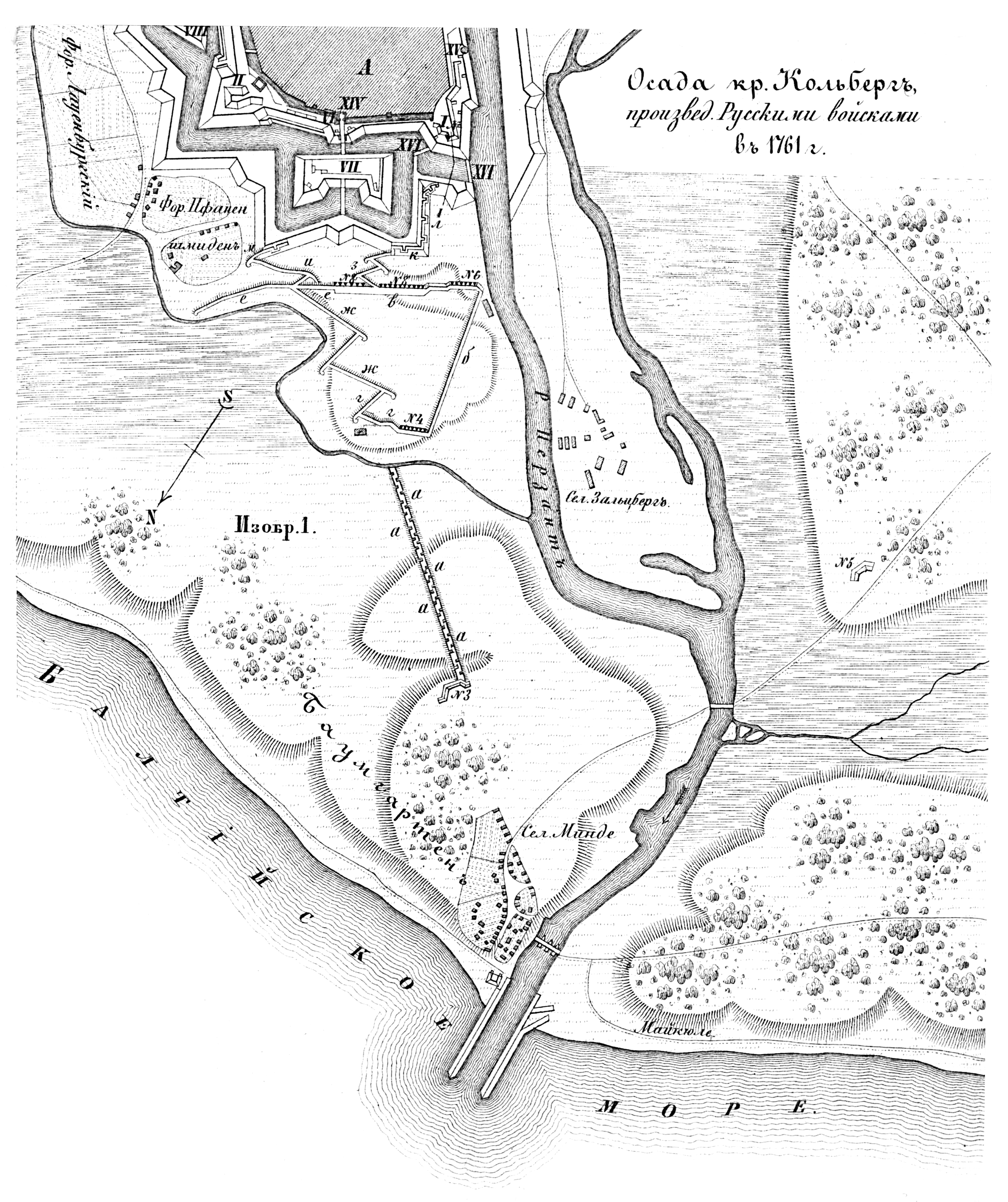 Осады крепостей. Изобр.1. Осада крепости Кольберг, произведенная русскими войсками в 1761 году