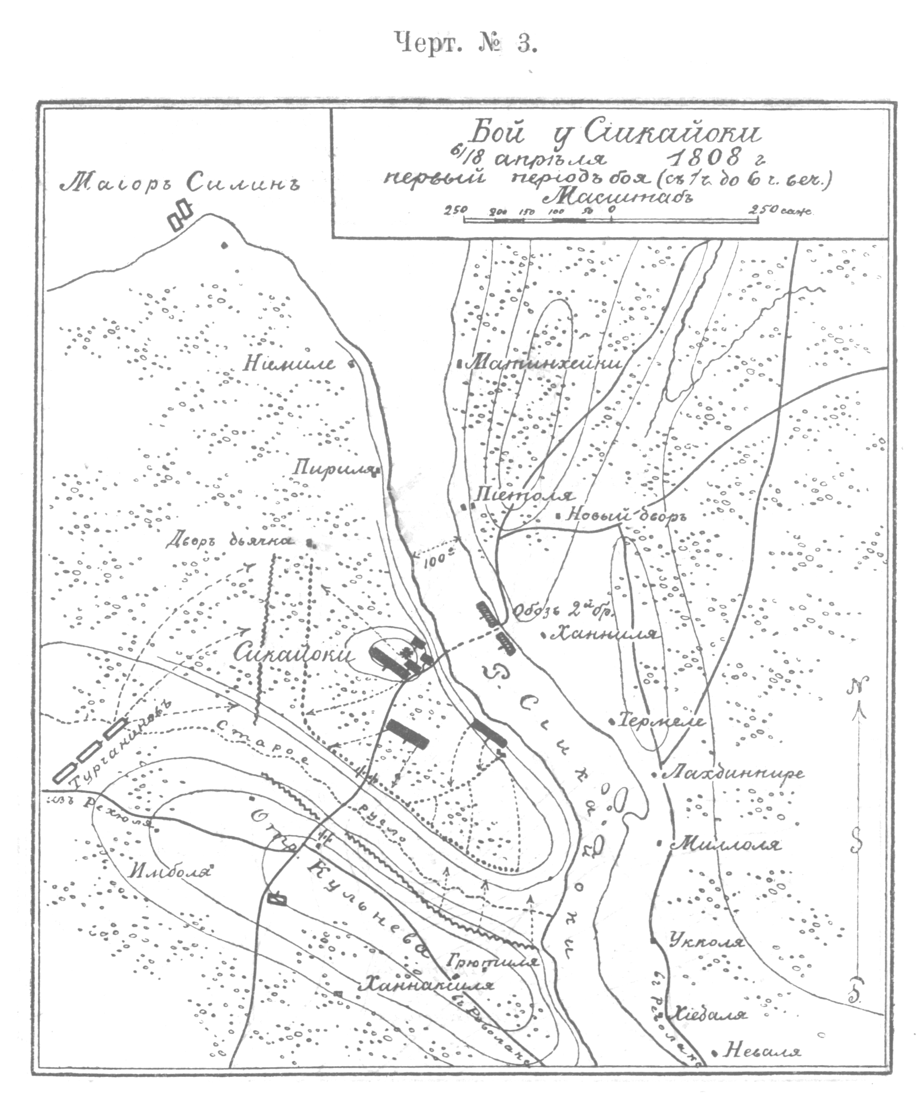 Бой у Сиикайоки 6/18 апреля 1808 года, первый период боя (с 1 ч до 6 ч вечера)