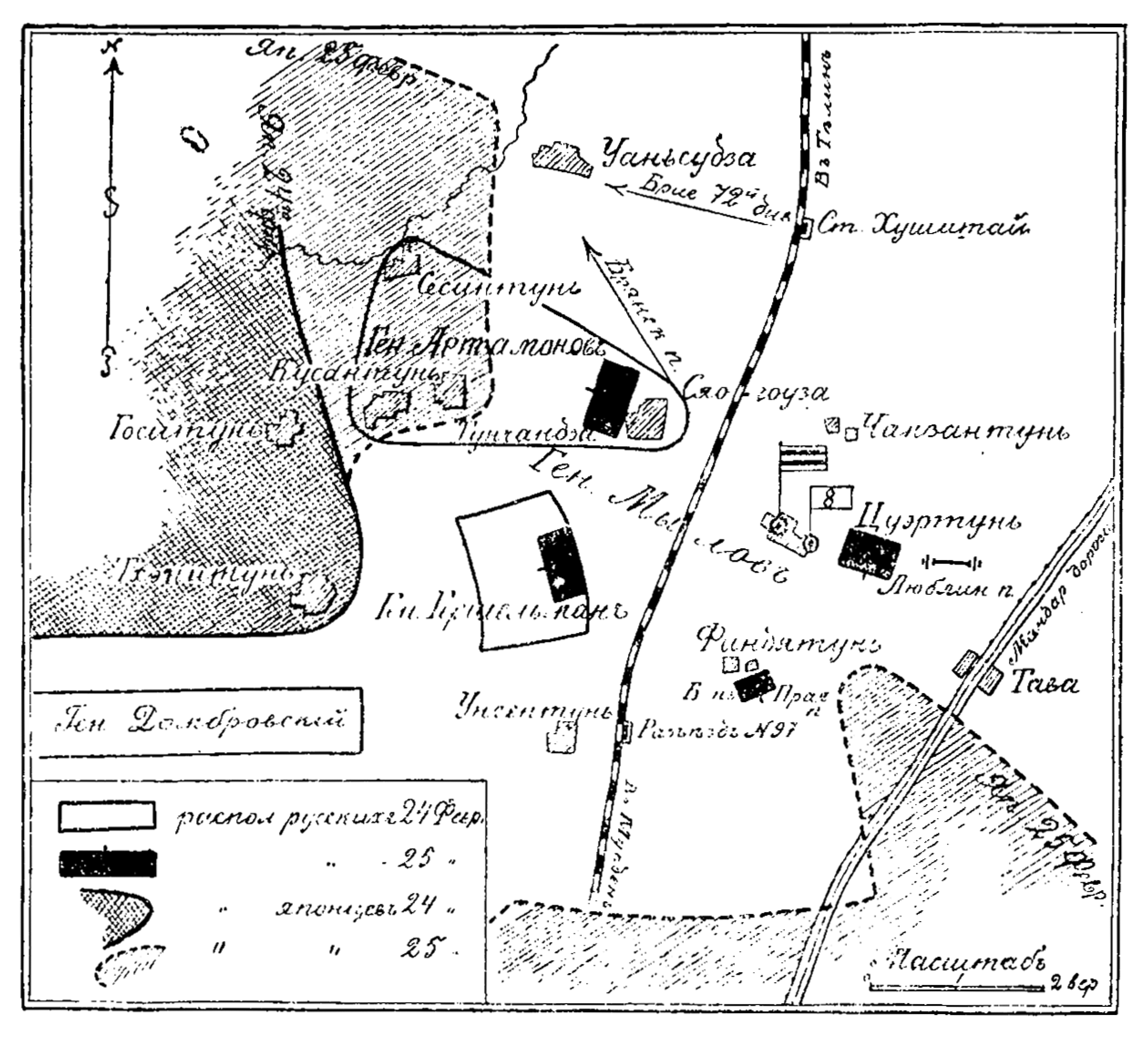 Расположение русских и японцев 24 и 25 февраля 1905 года у Тхэнитунь-Тунчандза