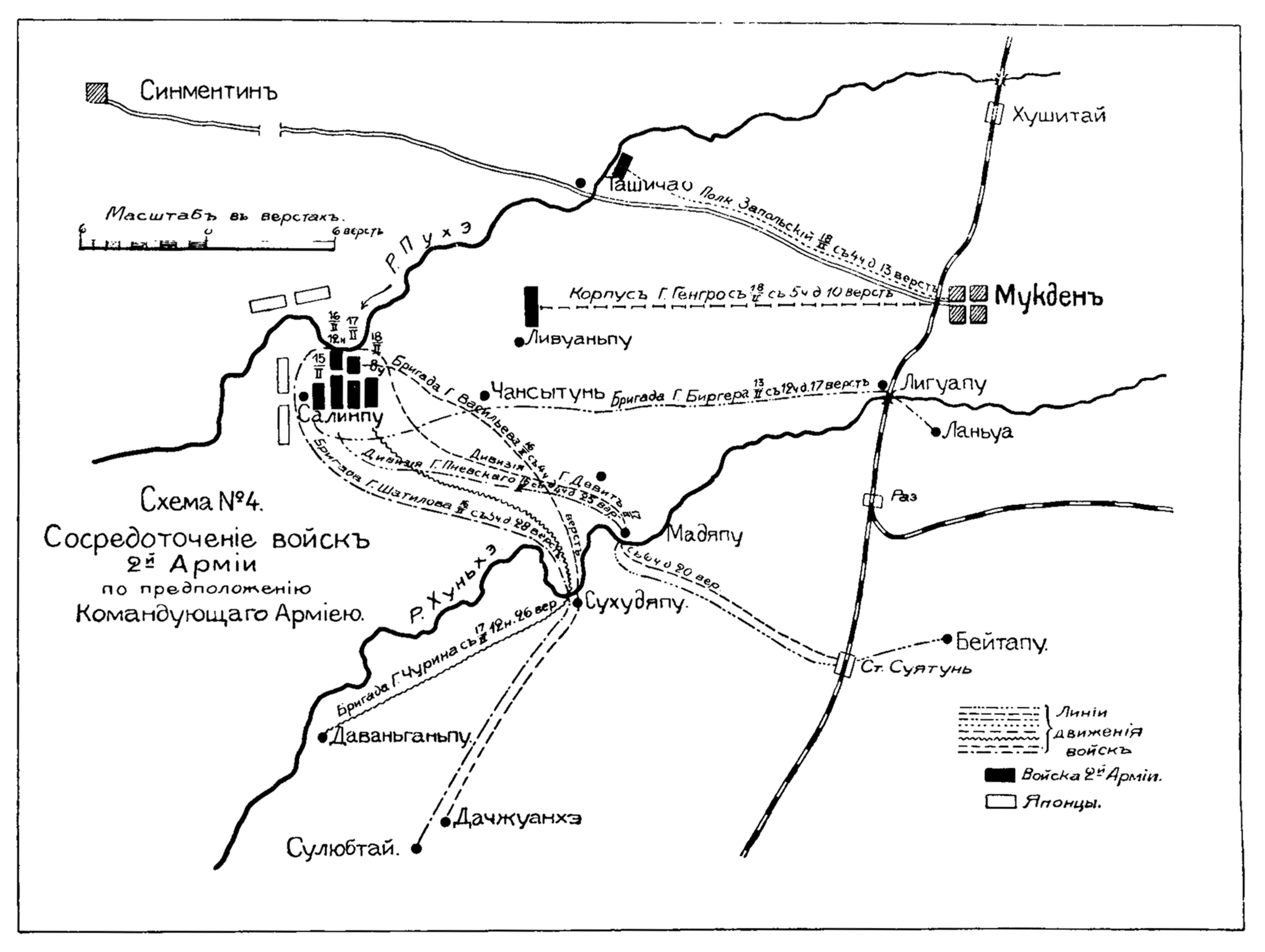 Сосредоточение войск 2-й Армии по предположению Командующего Армией