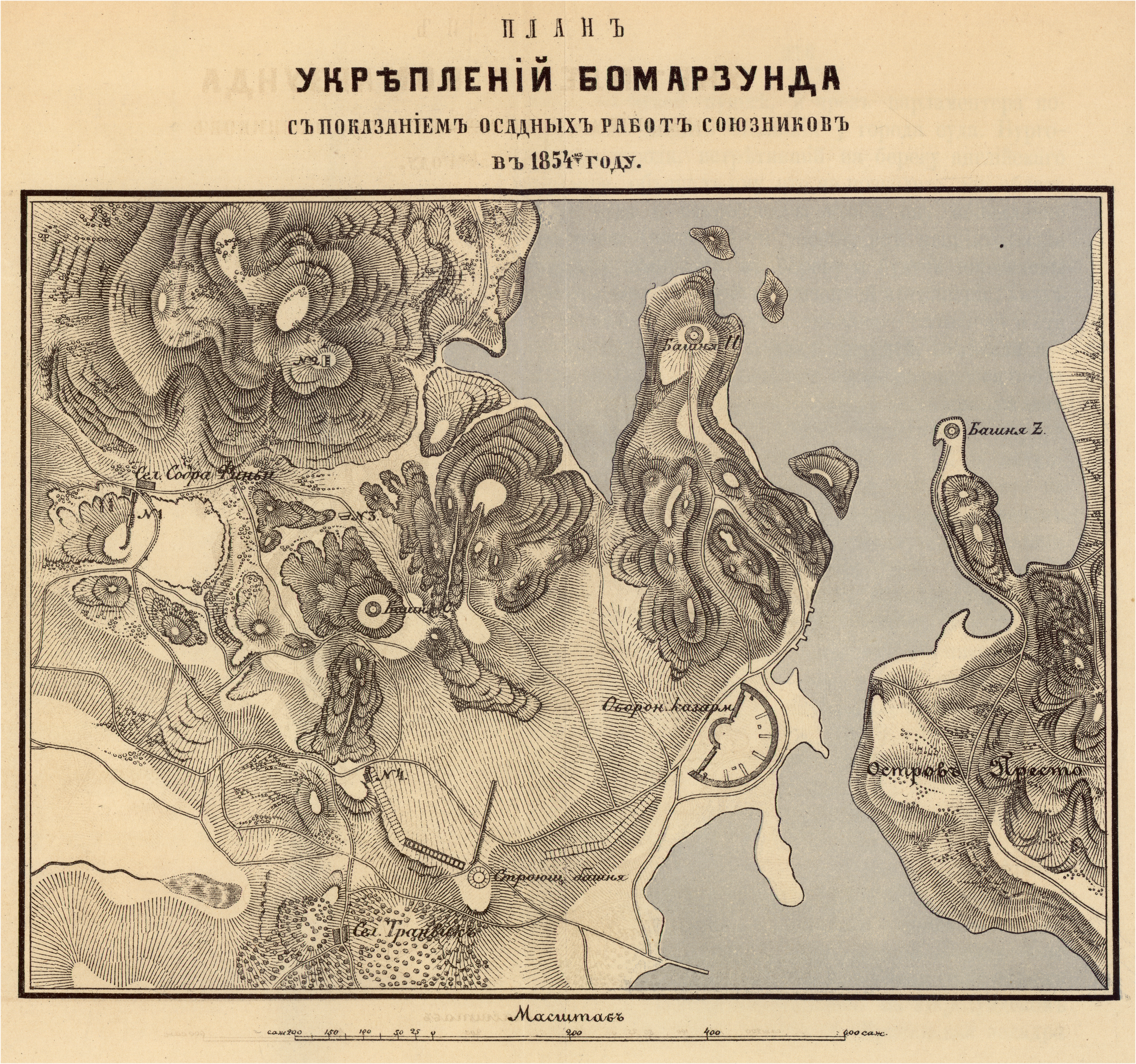 Укрепления Бомарзунда с показанием осадных работ союзников в 1854 году