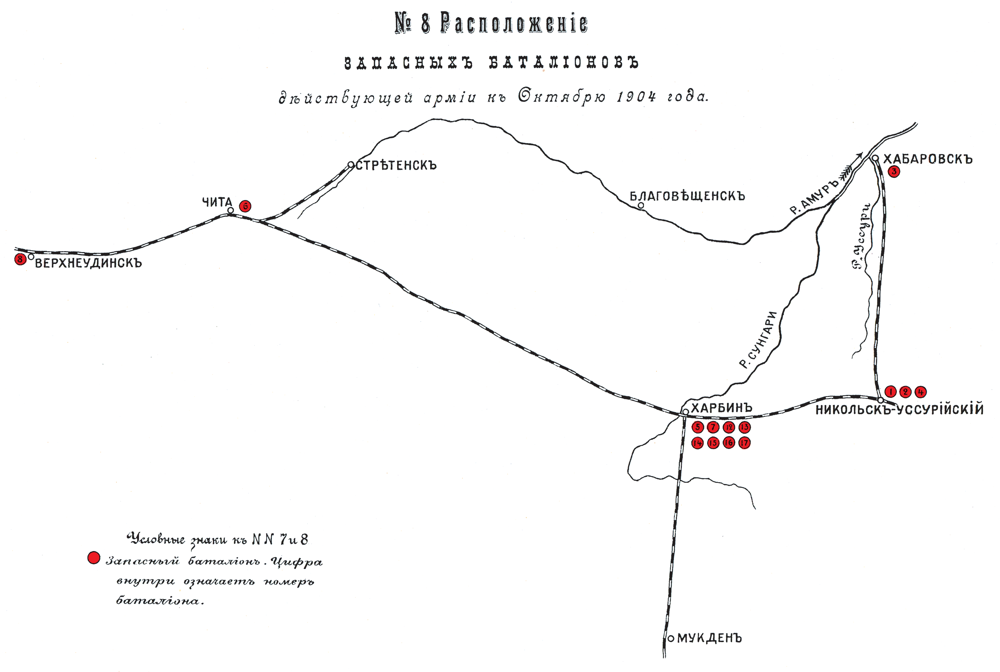 Расположение запасных батальонов действующей армии к октябрю 1904 года