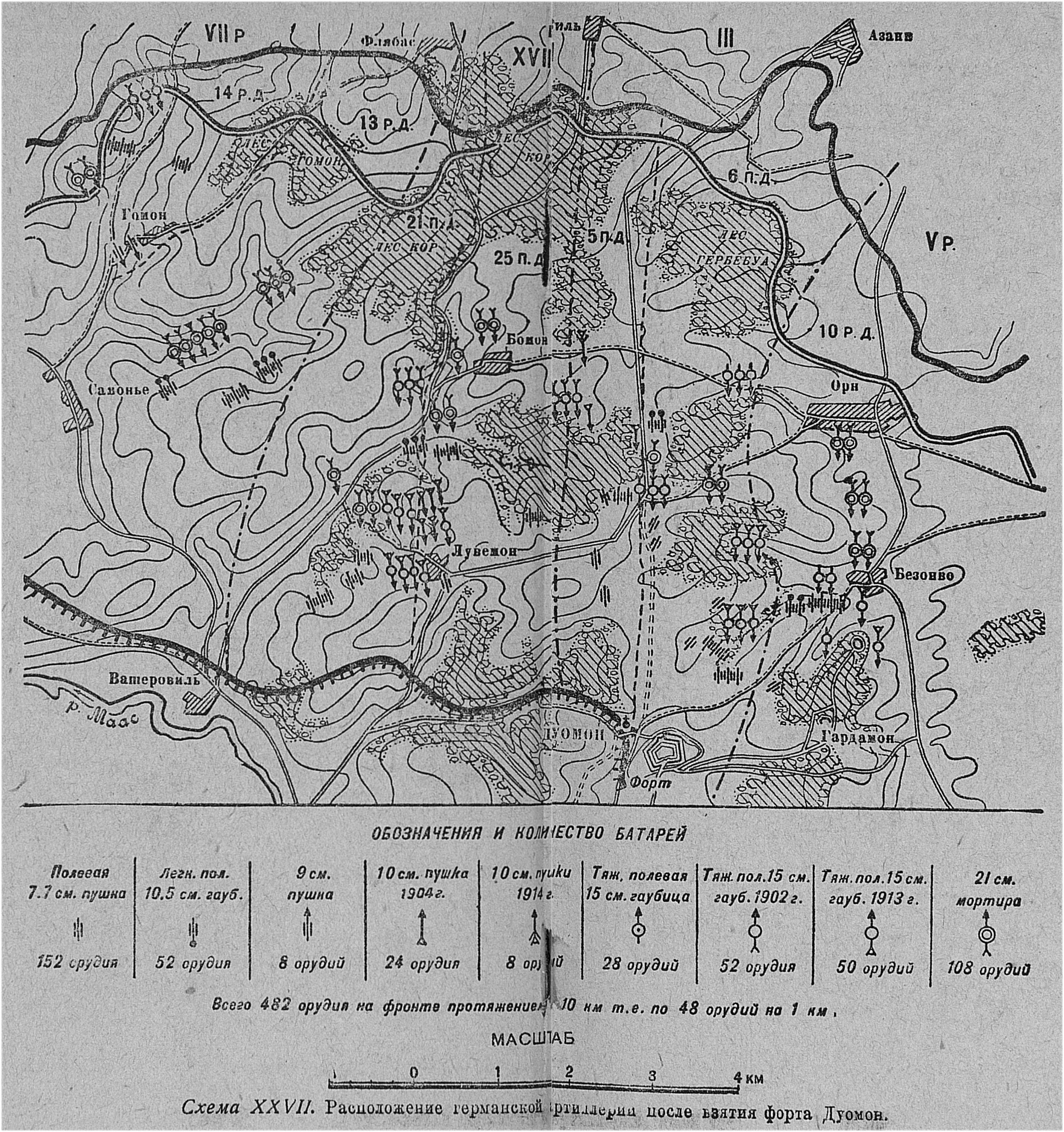 Расположение германской артиллерии после взятия форта Дуомон