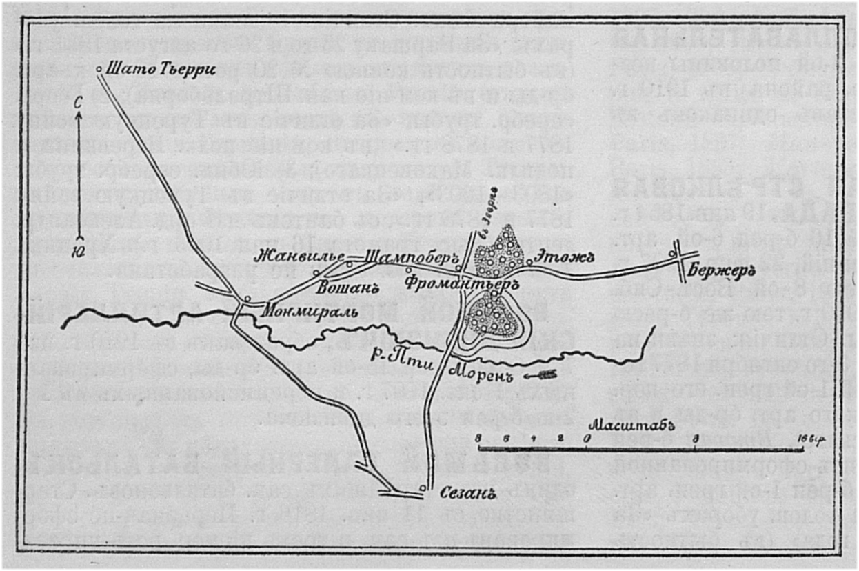 Район сражения 2 февраля 1814 года у селения Вошан