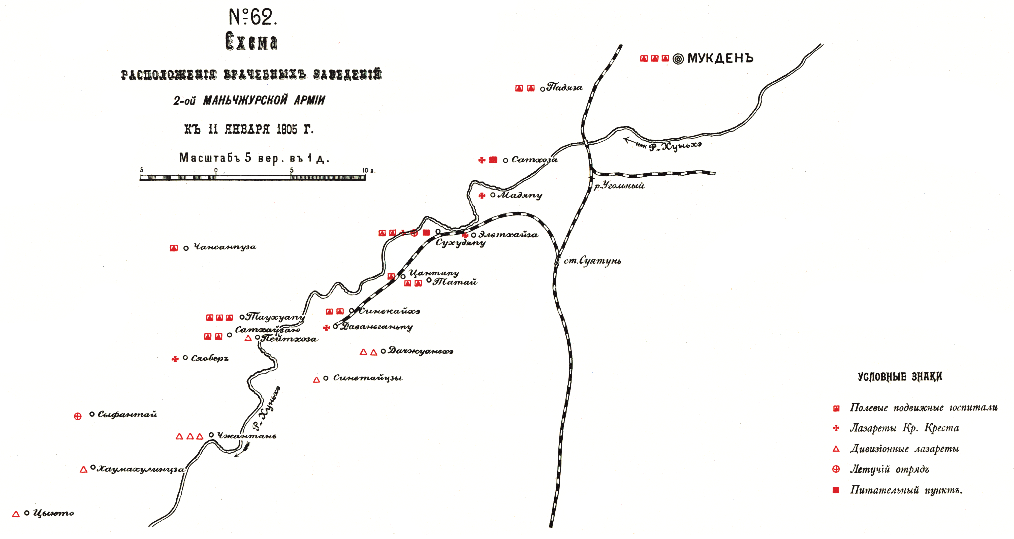 Расположение врачебных заведений 2-ой Маньчжурской армии к 11 января 1905 года