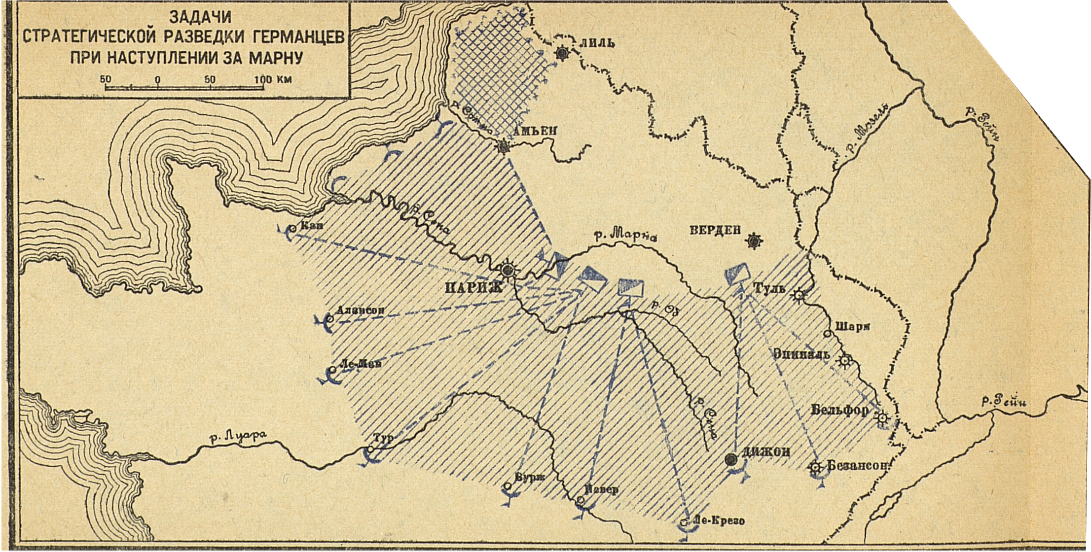 Кампания 1914 года. Французский театр. Задачи стратегической разведки германцев при наступлении на Марну