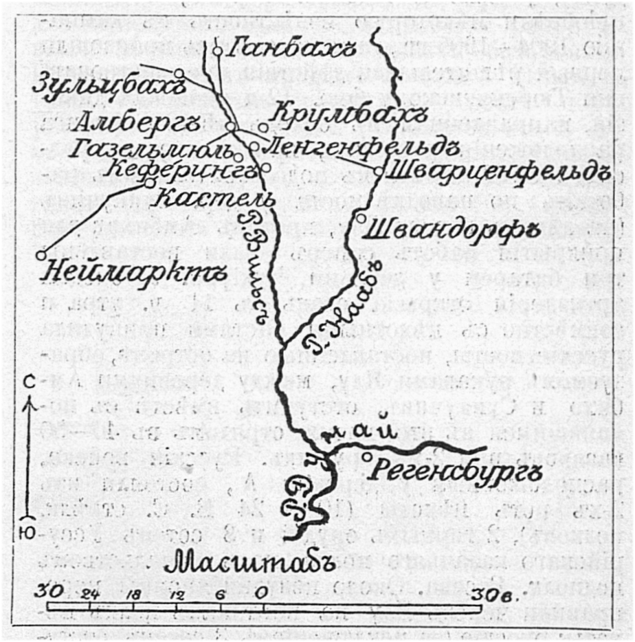 Район военных действий пятидневного боя 19-23 апреля 1809г.