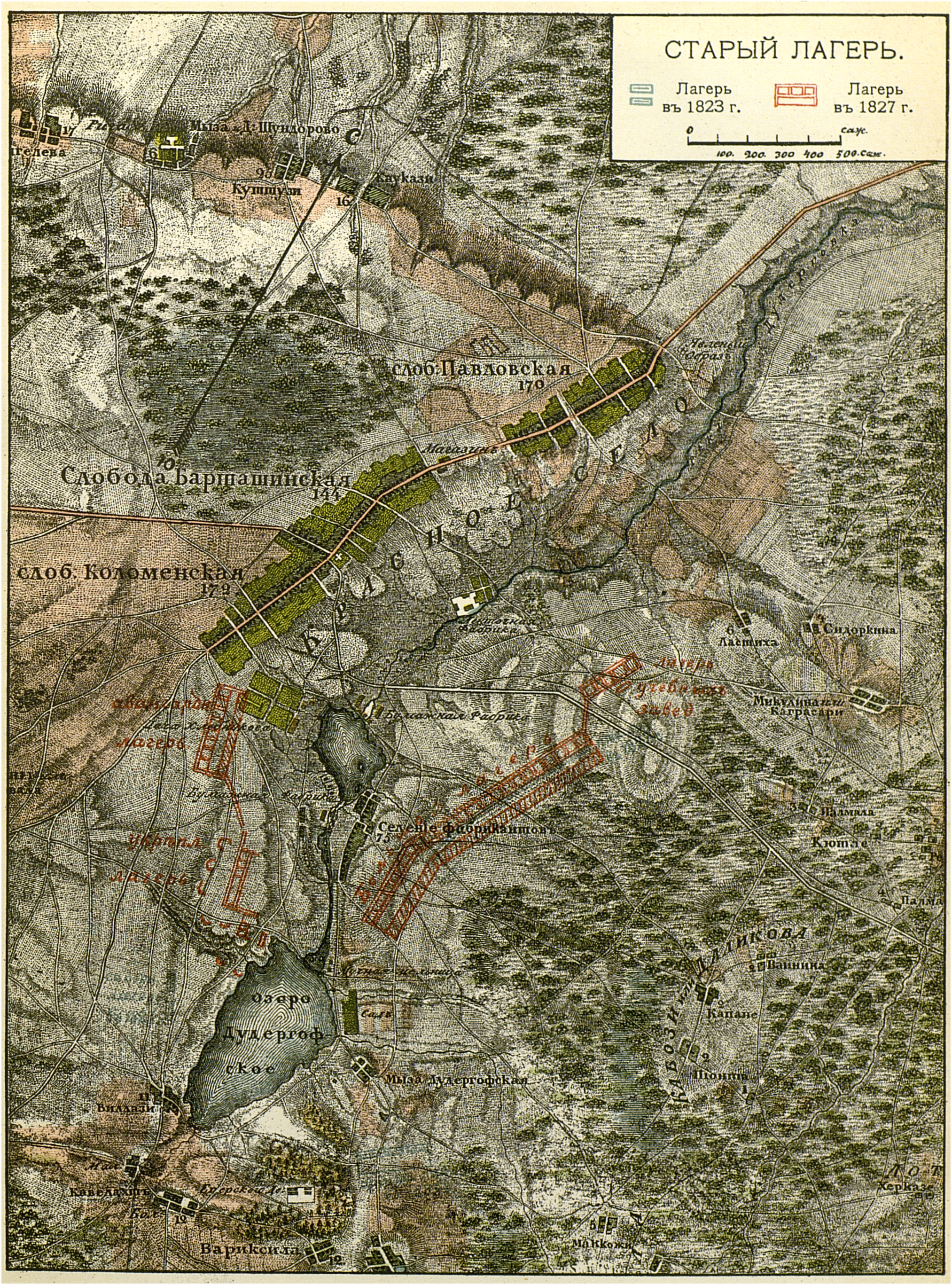Карта Красносельского лагеря. Старый лагерь 1823 и 1827 гг.
