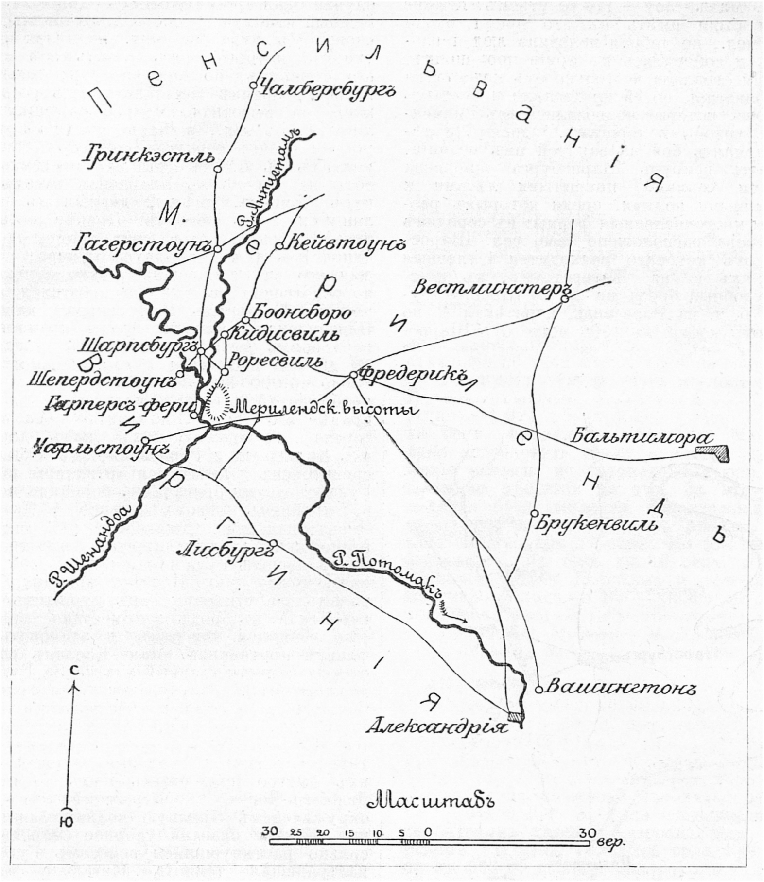 Район сражения 16-17 сентября 1862 года на берегах Антиетама между войсками северян и южан