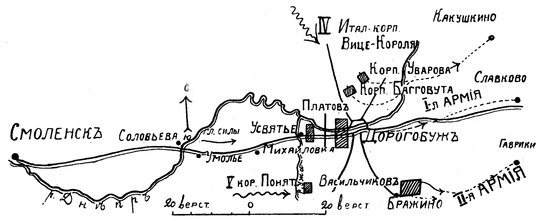 День 12 августа. Театр действий I и II армий