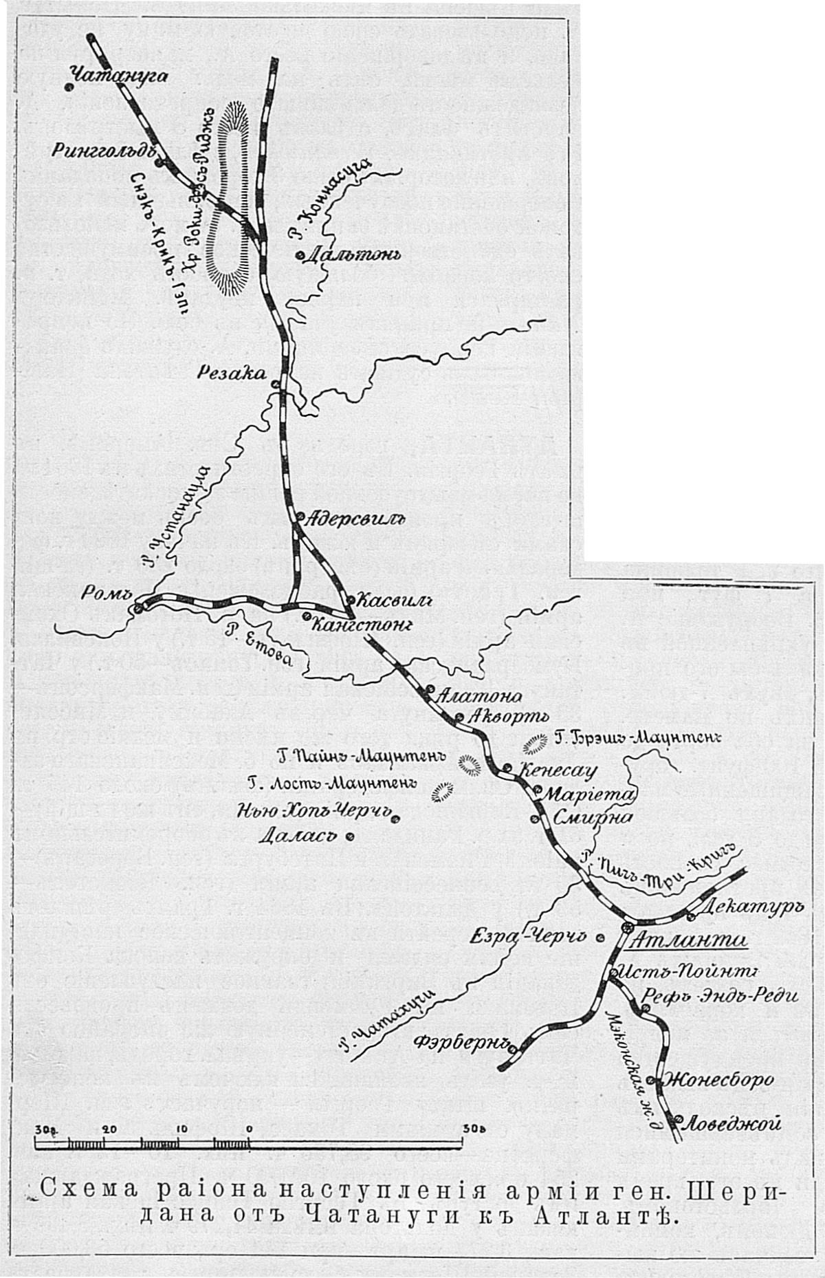 Район наступления армии генерала Шеридана от Чатануги к Атланте