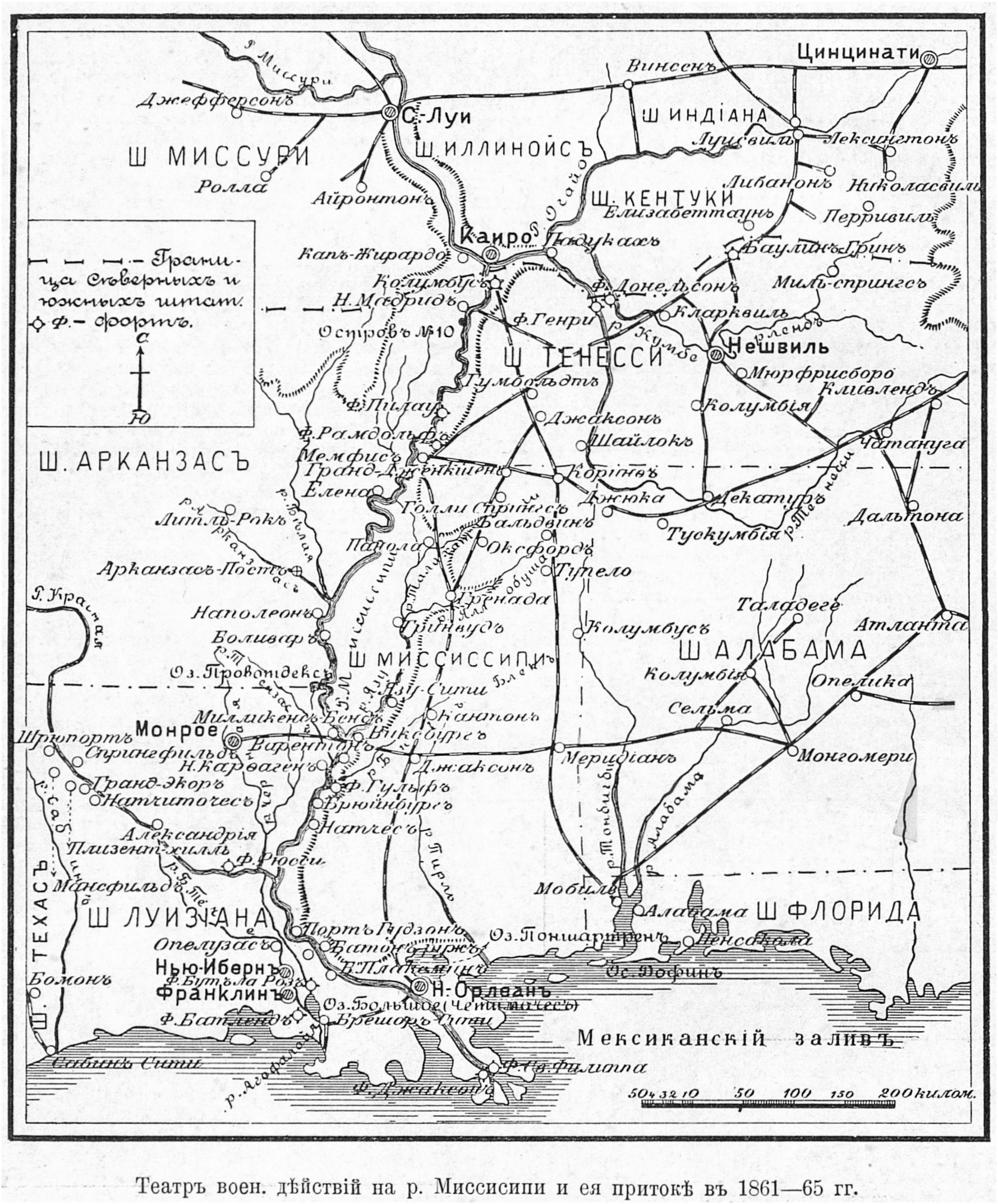 Театр военных действий на р. Миссисипи и ее притоке в 1861-65 гг.