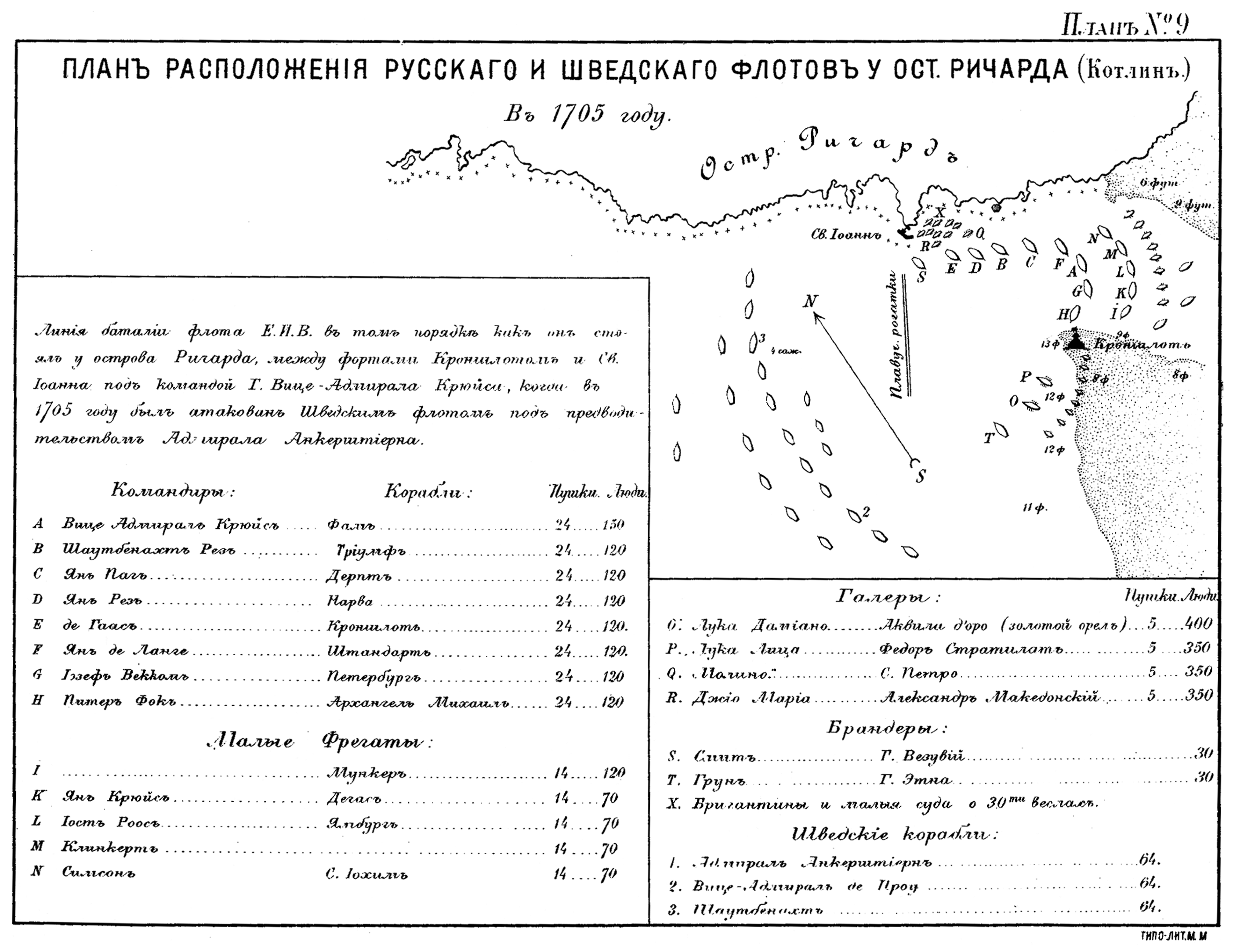 Расположение русского и шведского флотов у острова Ричарда (Котлин) в 1705 году