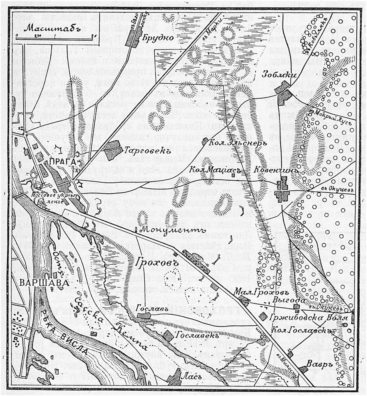 Район сражения 13 февраля 1831 года между селения Большой и Малый Грохов