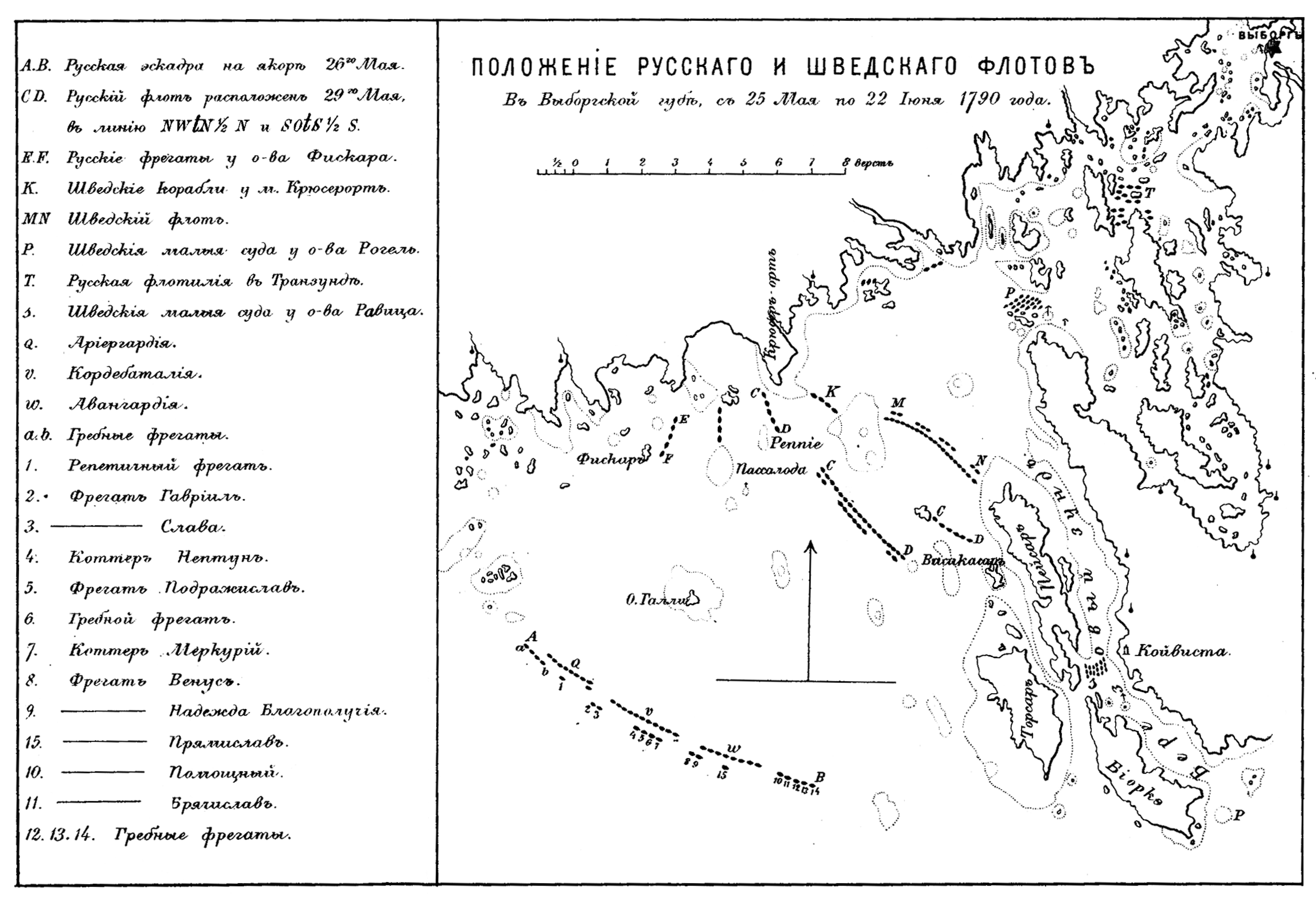 Положение русского и шведских флотов в Выборгской губе с 23 мая по 22 июня 1790 года