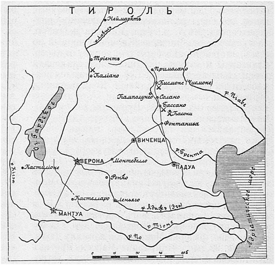 Район боев в кампанию 1796 и 1813 годов в окрестностях города Бассано