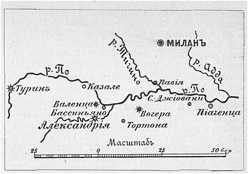 Район боя 1 мая 1799 года возле города Бассиньяно