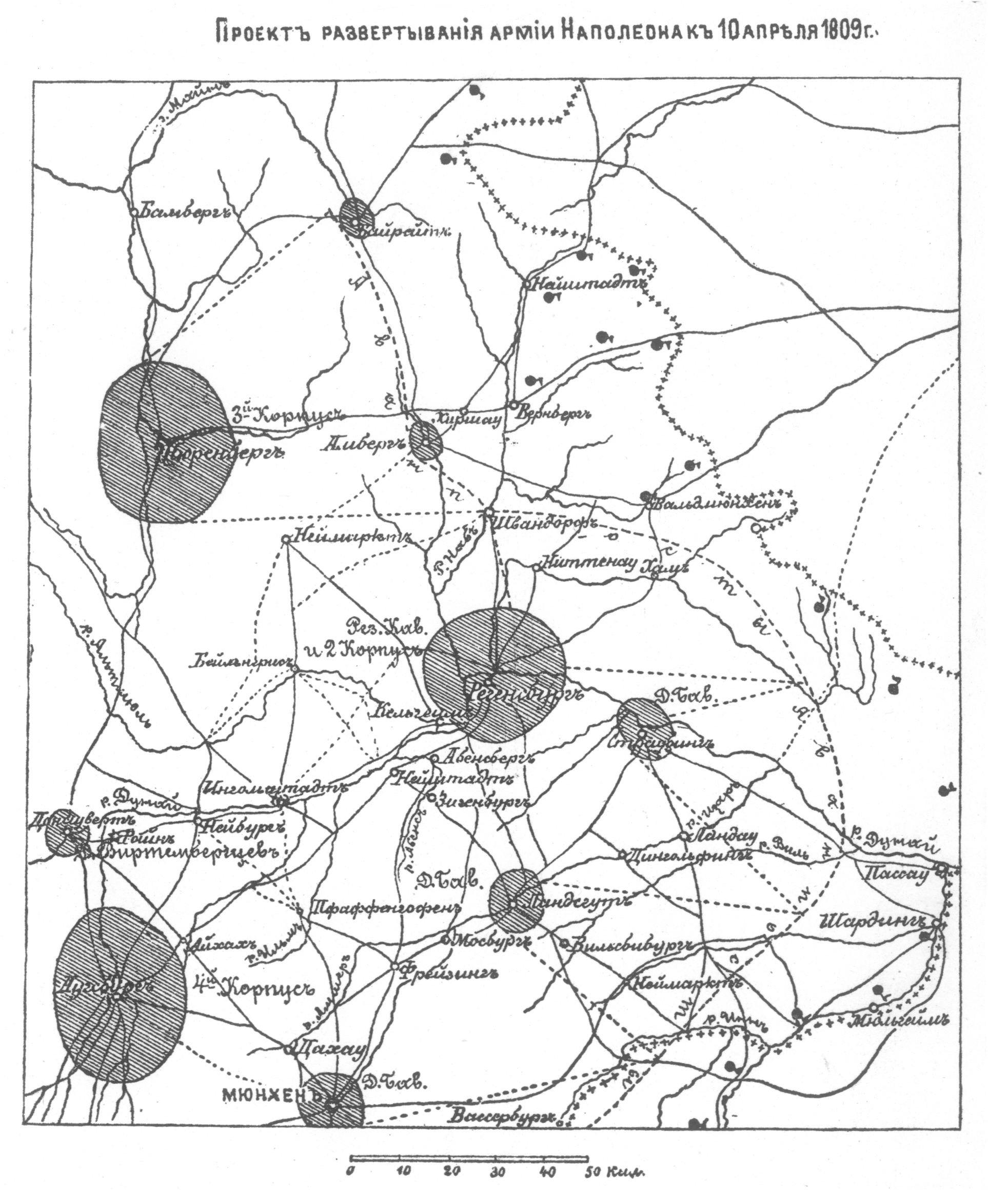Район военных действий пятидневного боя 19-23 апреля 1809г.