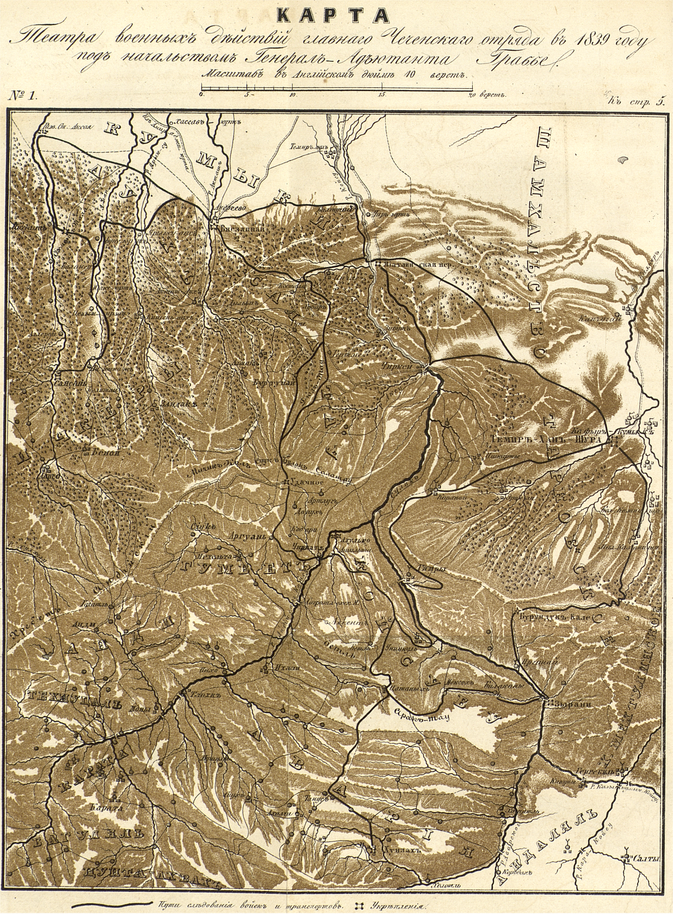 Карта театра военных действий главного Чеченского отряда в 1839 году под начальством Генерал-Адъютанта Граббе.