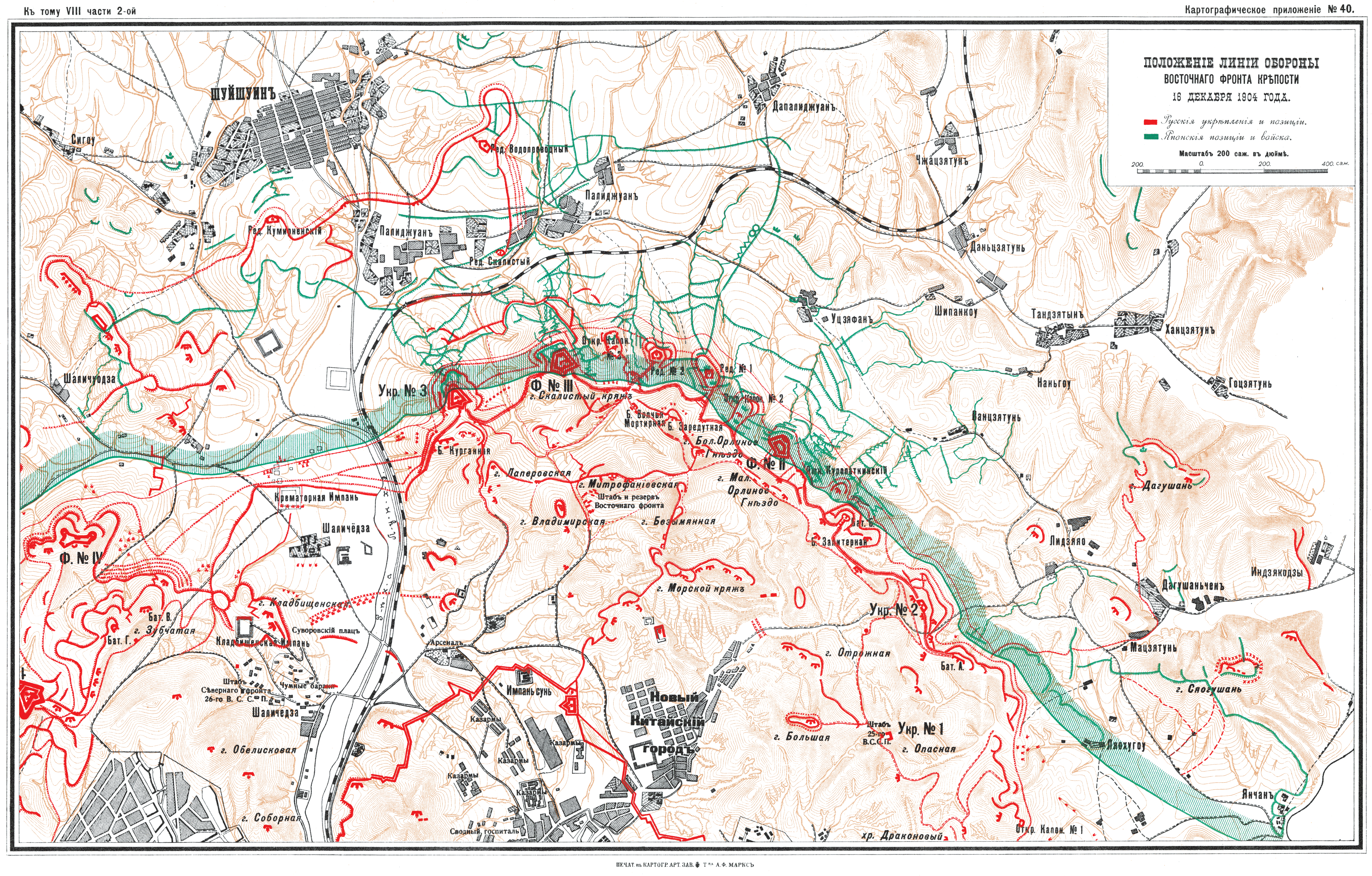 Положение линии обороны Восточного фронта крепости 16 декабря 1904 года