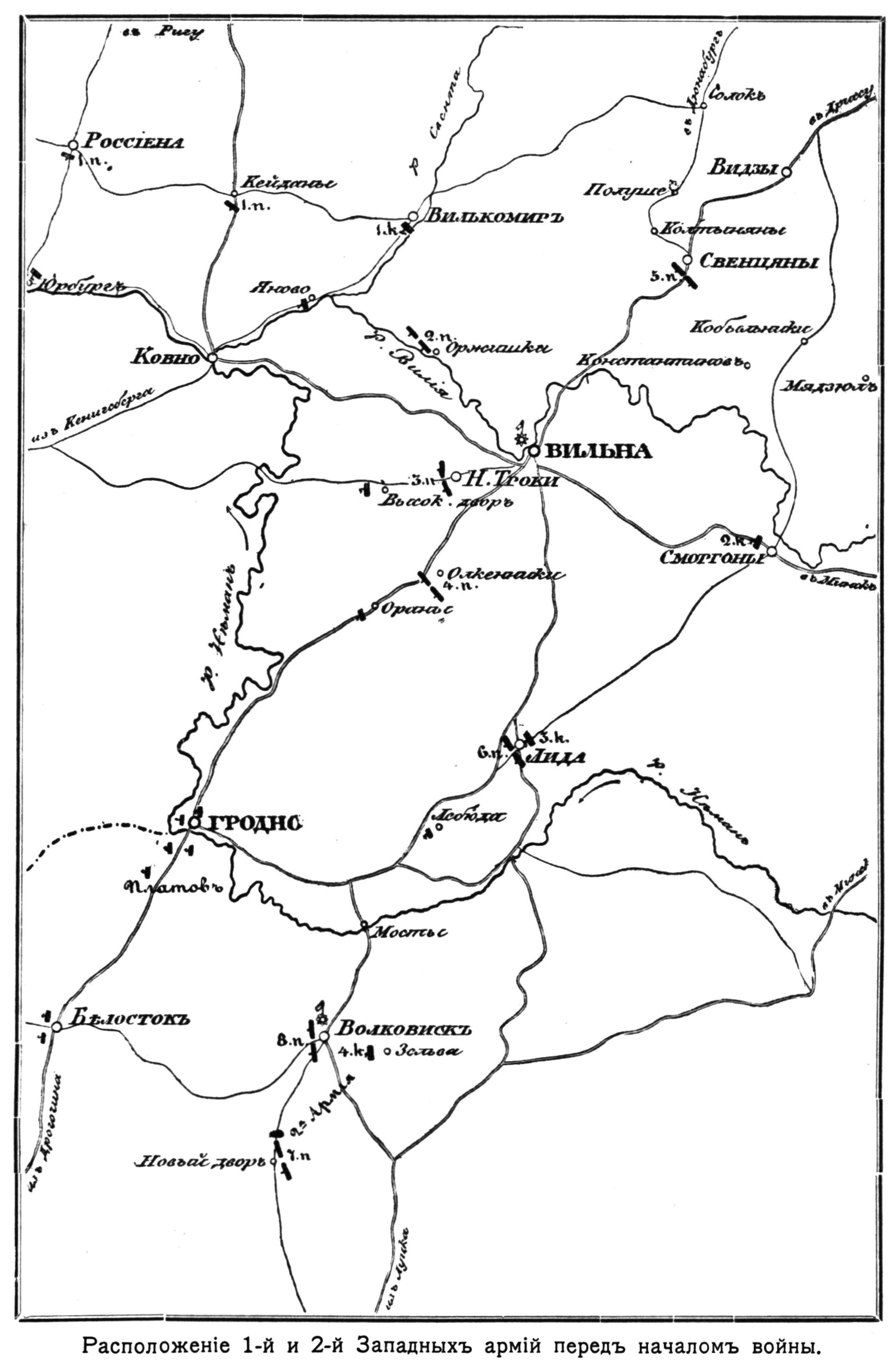 Расположение 1-й и 2-й Западных армий перед началом войны