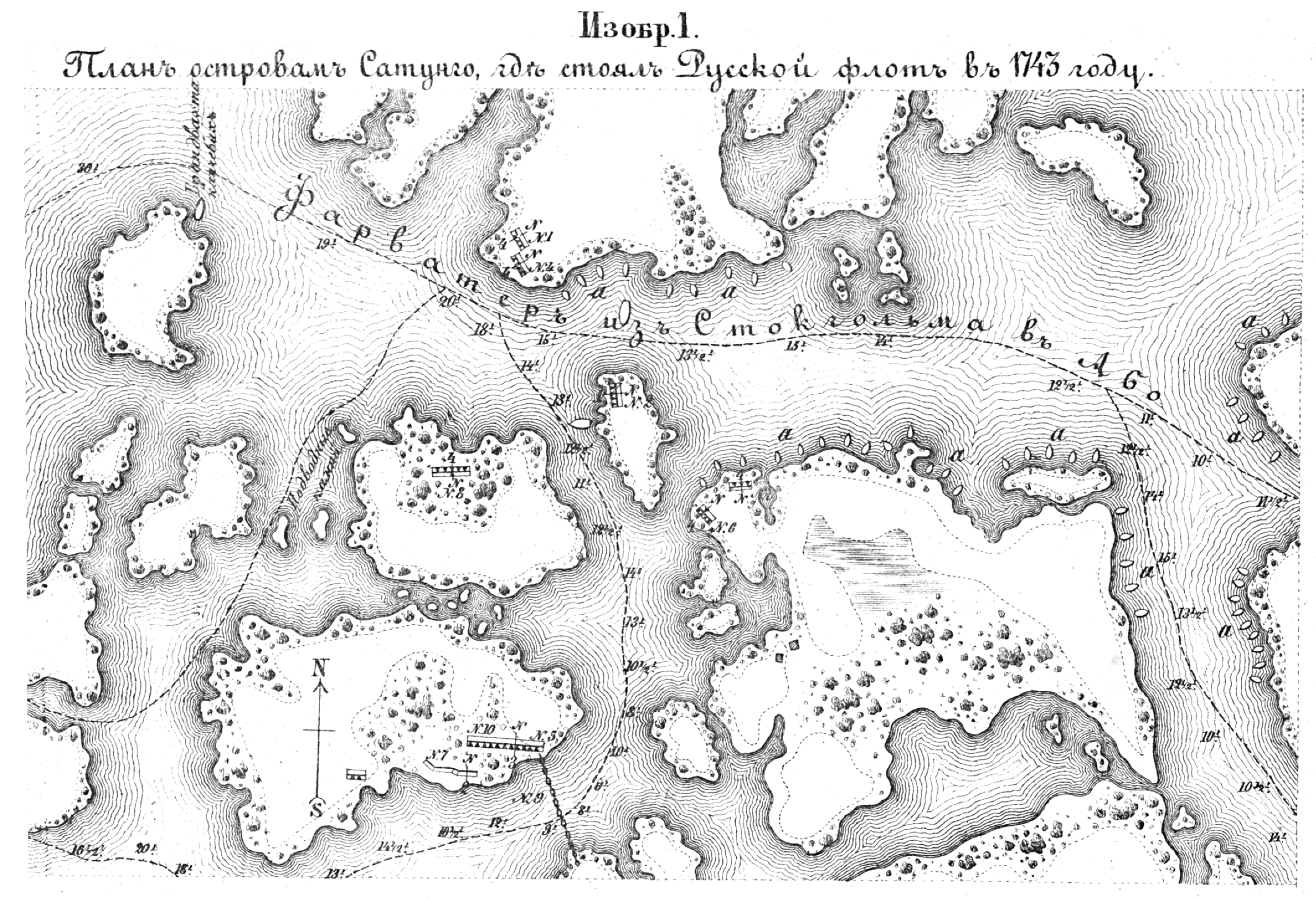 Полевые и временные укрепления. Изобр.1. План островам Сатунго, где стоял русский флот в 1743 году