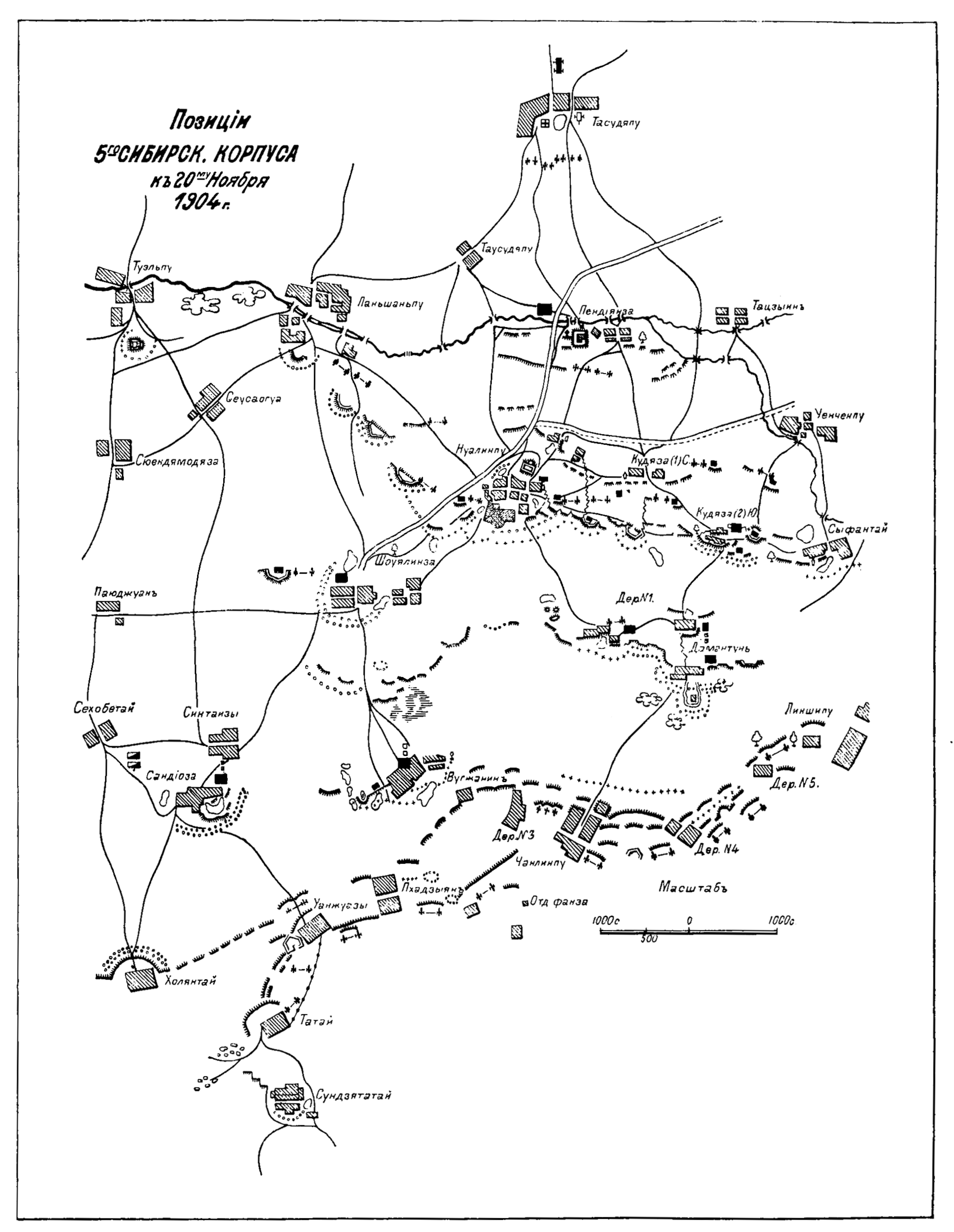 Позиции 5-го Сибирского корпуса к 20 ноября 1904 года