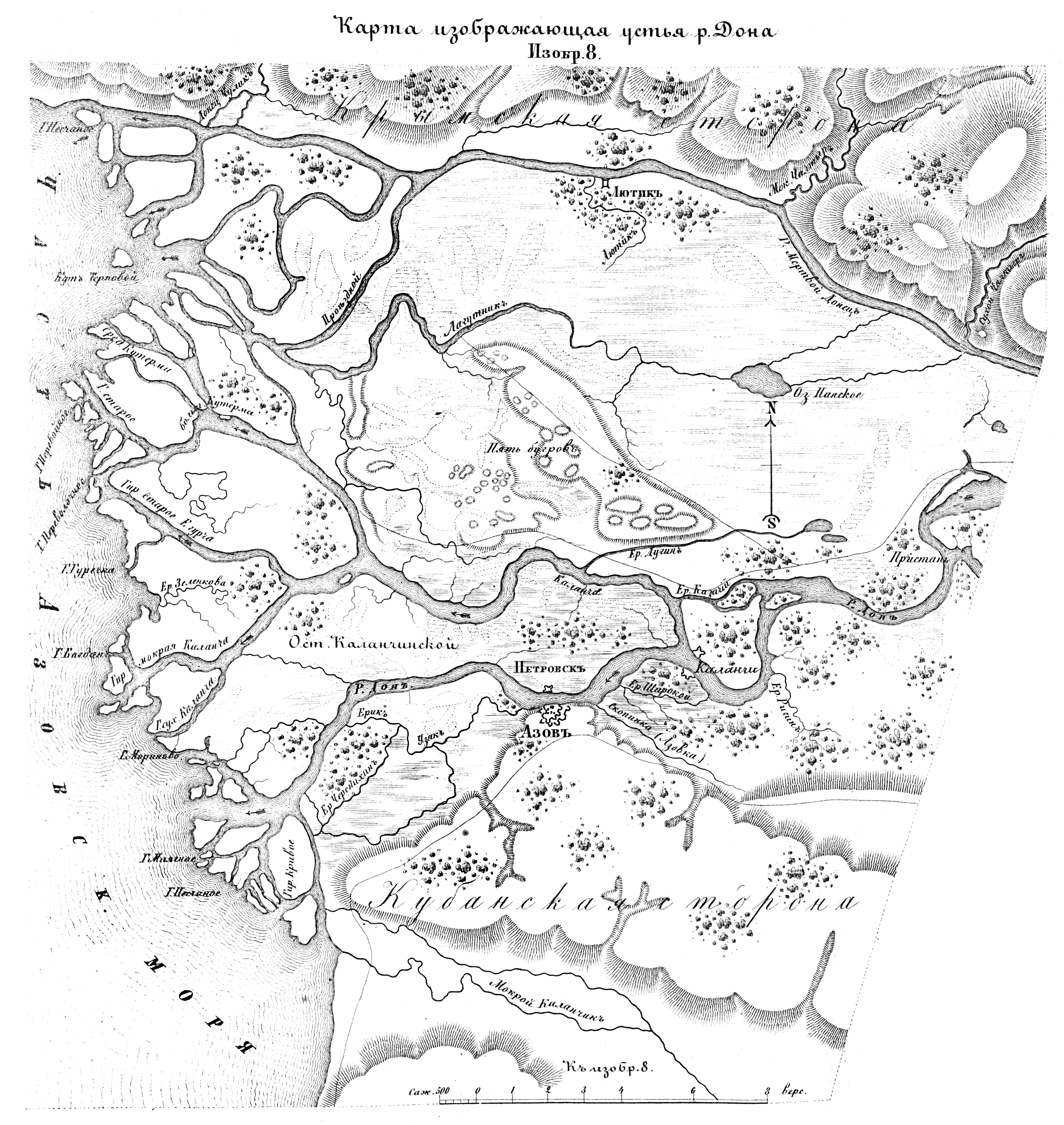 Осады крепостей. Изобр.8. Карта, изображающая устья реки Дон