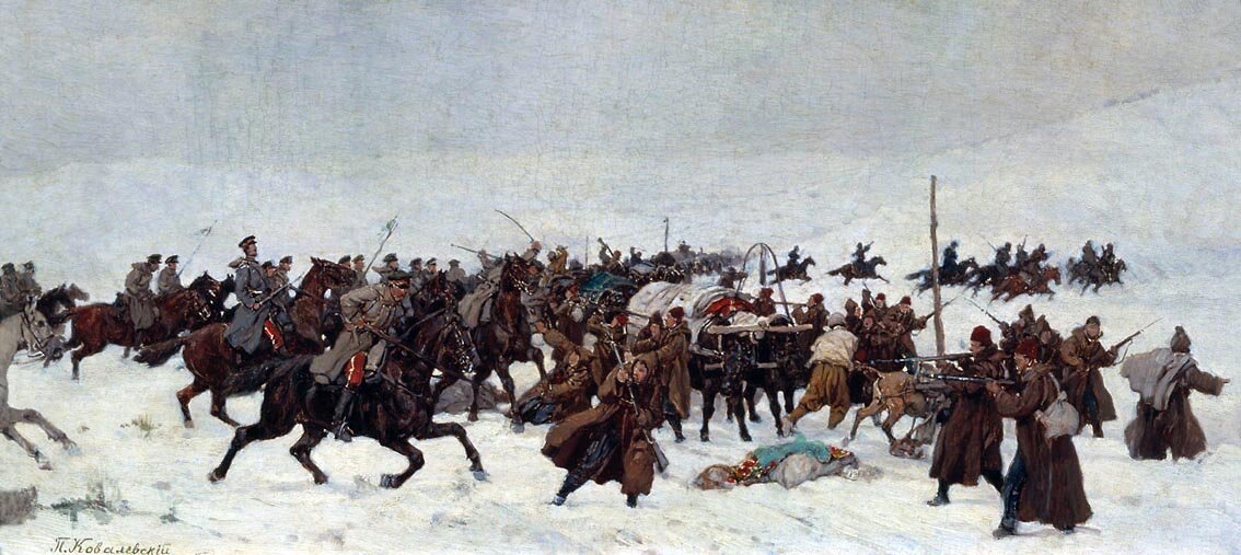 Атака русской кавалерии на турецкий обоз. 1877 год.