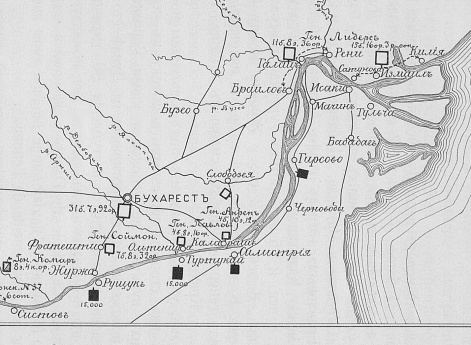 54½ батальона пехоты, 32 эскадрона, 12 сотен казаков, 172 орудия; Дунайская флотилия: 27 канонерских лодок, три парохода, две шхуны, две баржи
