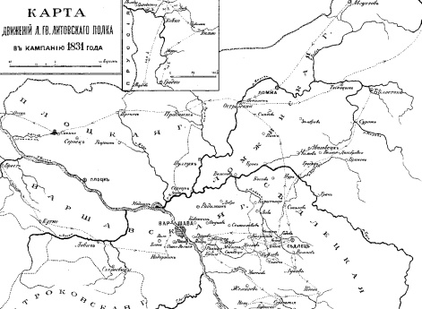 Карта движений Лейб-гвардии Литовского полка в кампанию 1831 года
