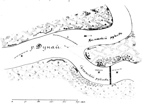 Карта переправы русских войск через Дунай в марте 1854 года.